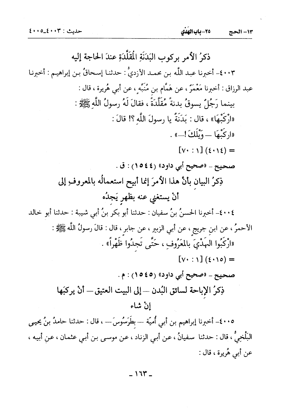 (ارْكَبْهَا) قَالَ: إِنَّهَا بَدَنَةٌ يَا رَسُولَ اللَّهِ قَالَ: