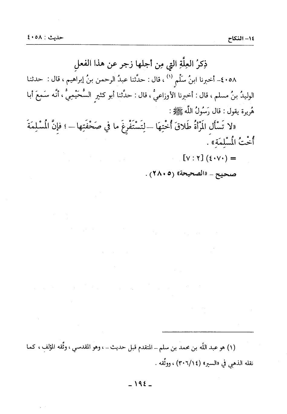(¬1) هو عبد الله بن محمد بن سلم ـ المتقدم قبل حديث ـ , وهو المقدسي , وثَّقه المؤلف. كما نقله الذهبي في ((السير)) (14/ 306) , ووثَّقه.