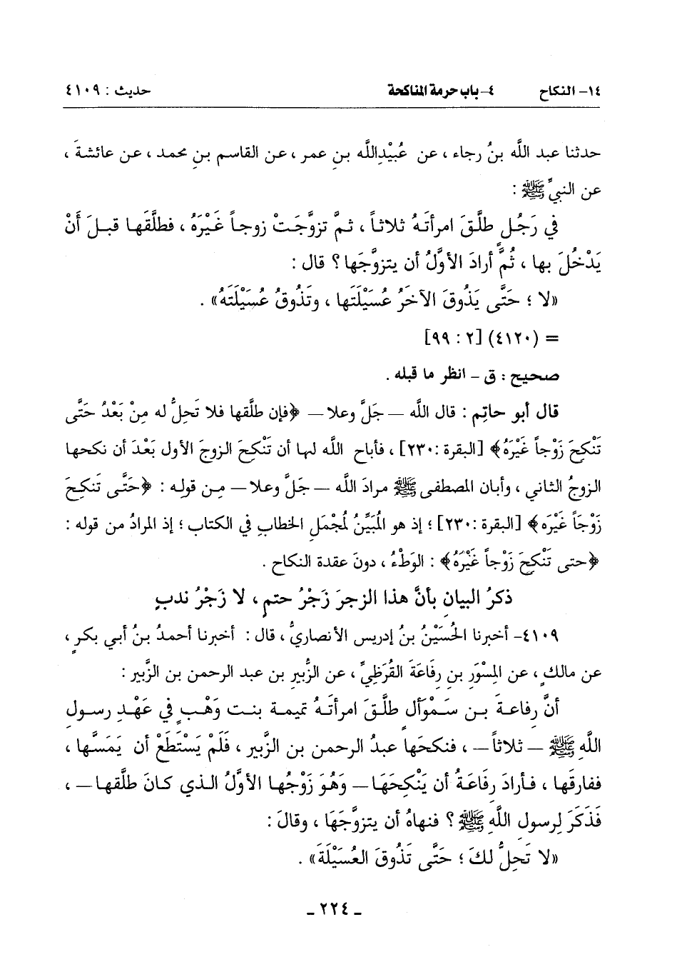 (لَا تَحِلُّ لَكَ حتى تذوق العسيلة) -[225]-