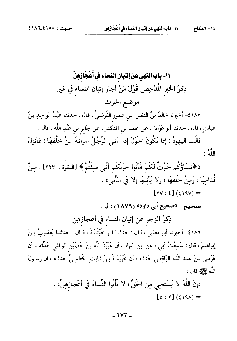 11 - بَابُ النَّهْيِ عَنْ إِتْيَانِ النِّسَاءِ فِي أَعْجَازِهِنَّ