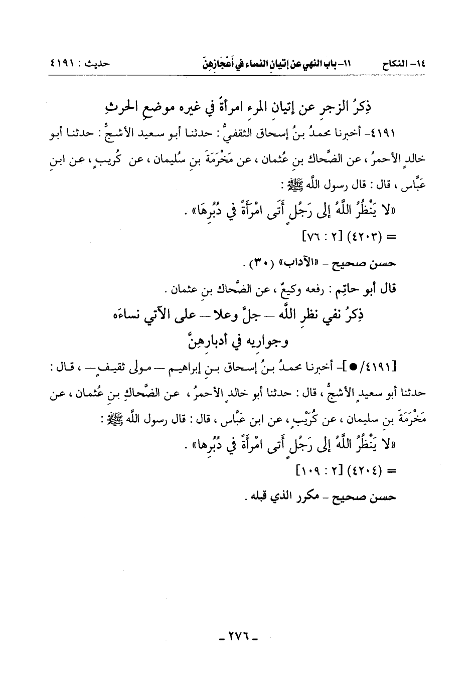 (لا يَنْظُرُ اللَّهُ إِلَى رَجُلٍ أَتَى امْرَأَةً فِي دبرها)