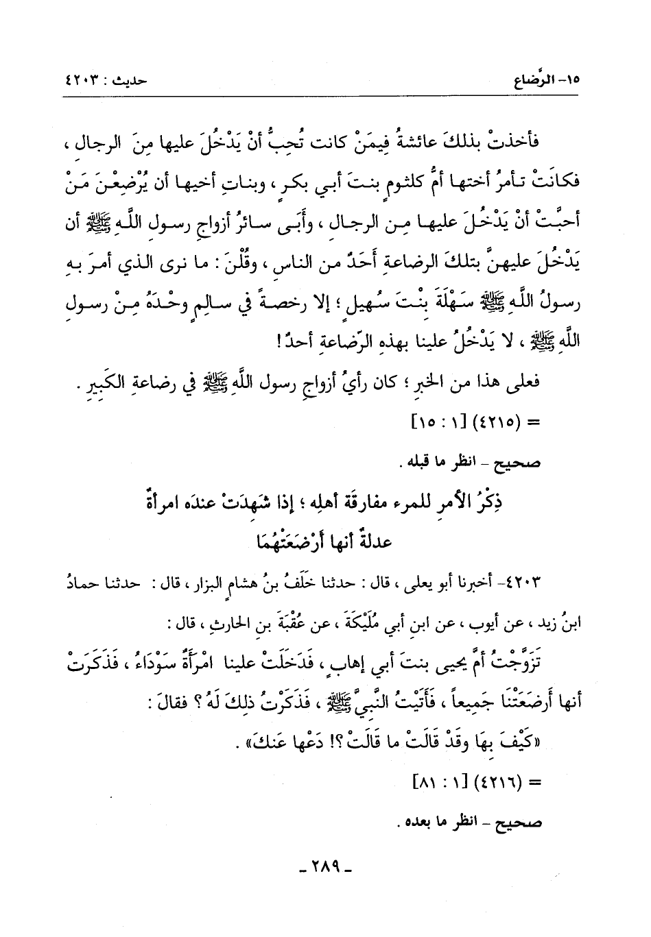 4203 - أَخْبَرَنَا أَبُو يَعْلَى قَالَ: حَدَّثَنَا خَلَفُ بْنُ هِشَامٍ الْبَزَّارُ قَالَ: حَدَّثَنَا حَمَّادُ بْنُ زَيْدٍ عَنْ أَيُّوبَ عَنِ ابْنِ أَبِي مُلَيْكَةَ عَنْ عُقْبَةَ بْنِ الْحَارِثِ قَالَ:
