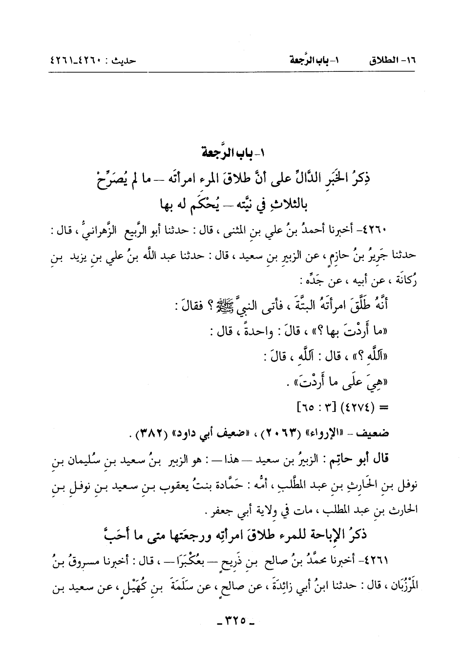 ذِكْرُ الْإِبَاحَةِ لِلْمَرْءِ طَلَاقَ امْرَأَتِهِ وَرَجْعَتِهَا مَتَى ما أحب