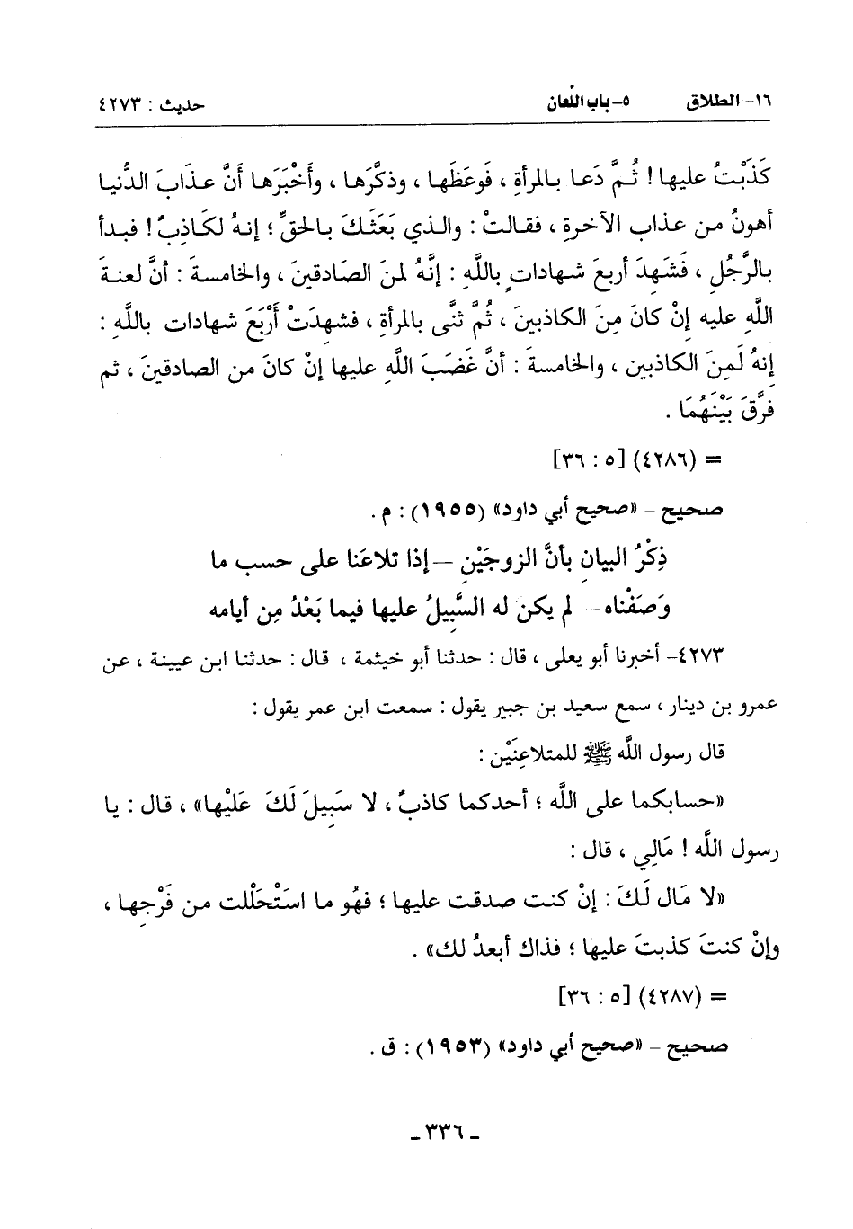 قَالَ رَسُولُ اللَّهِ صَلَّى اللَّهُ عَلَيْهِ وَسَلَّمَ لِلْمُتَلَاعِنَيْنِ: