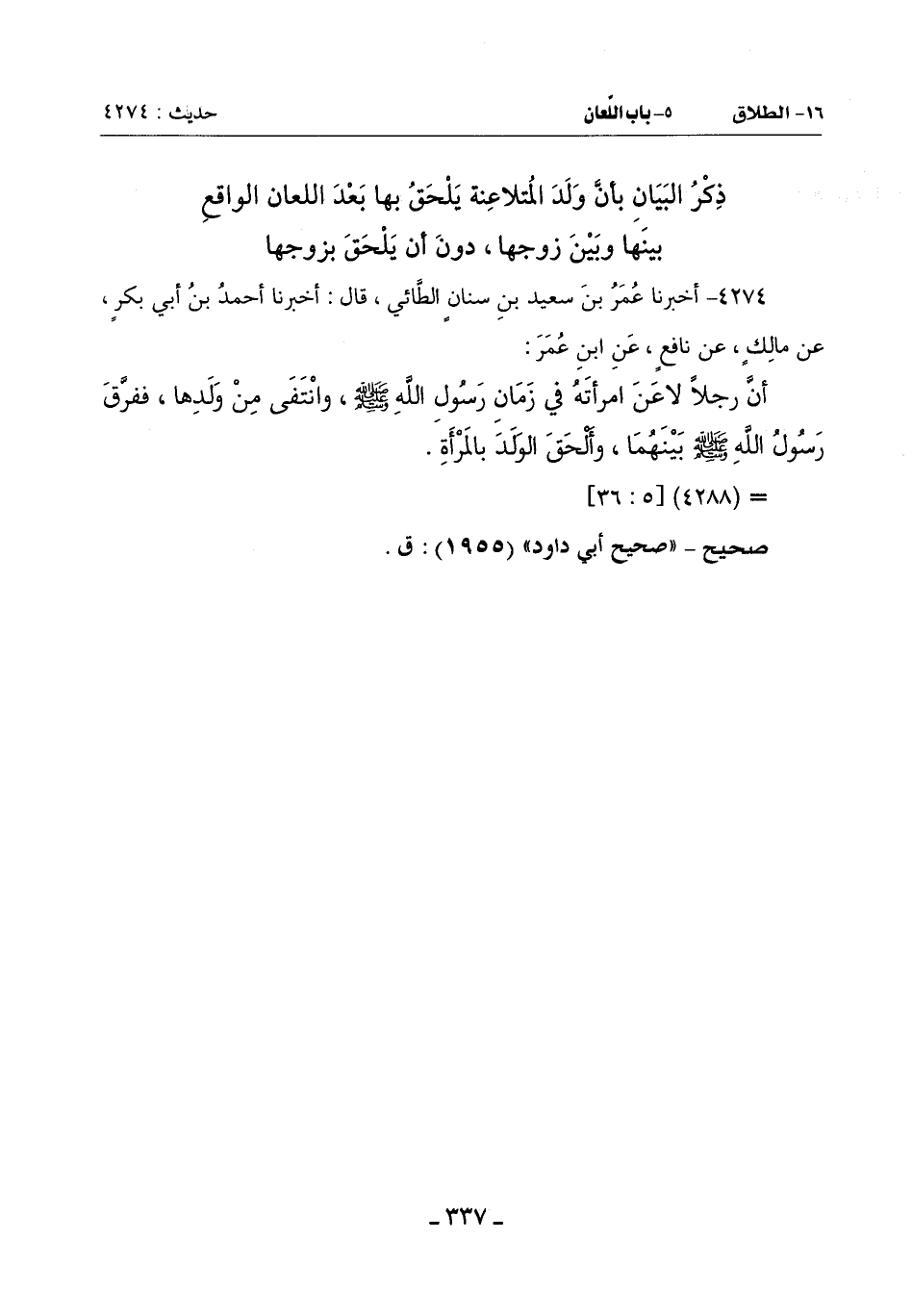 4274 - أَخْبَرَنَا عُمَرُ بْنُ سَعِيدِ بْنِ سِنَانٍ الطَّائِيُّ قَالَ: أَخْبَرَنَا أَحْمَدُ بْنُ أَبِي بَكْرٍ عَنْ مَالِكٍ عَنْ نَافِعٍ عَنِ ابْنِ عُمَرَ:
