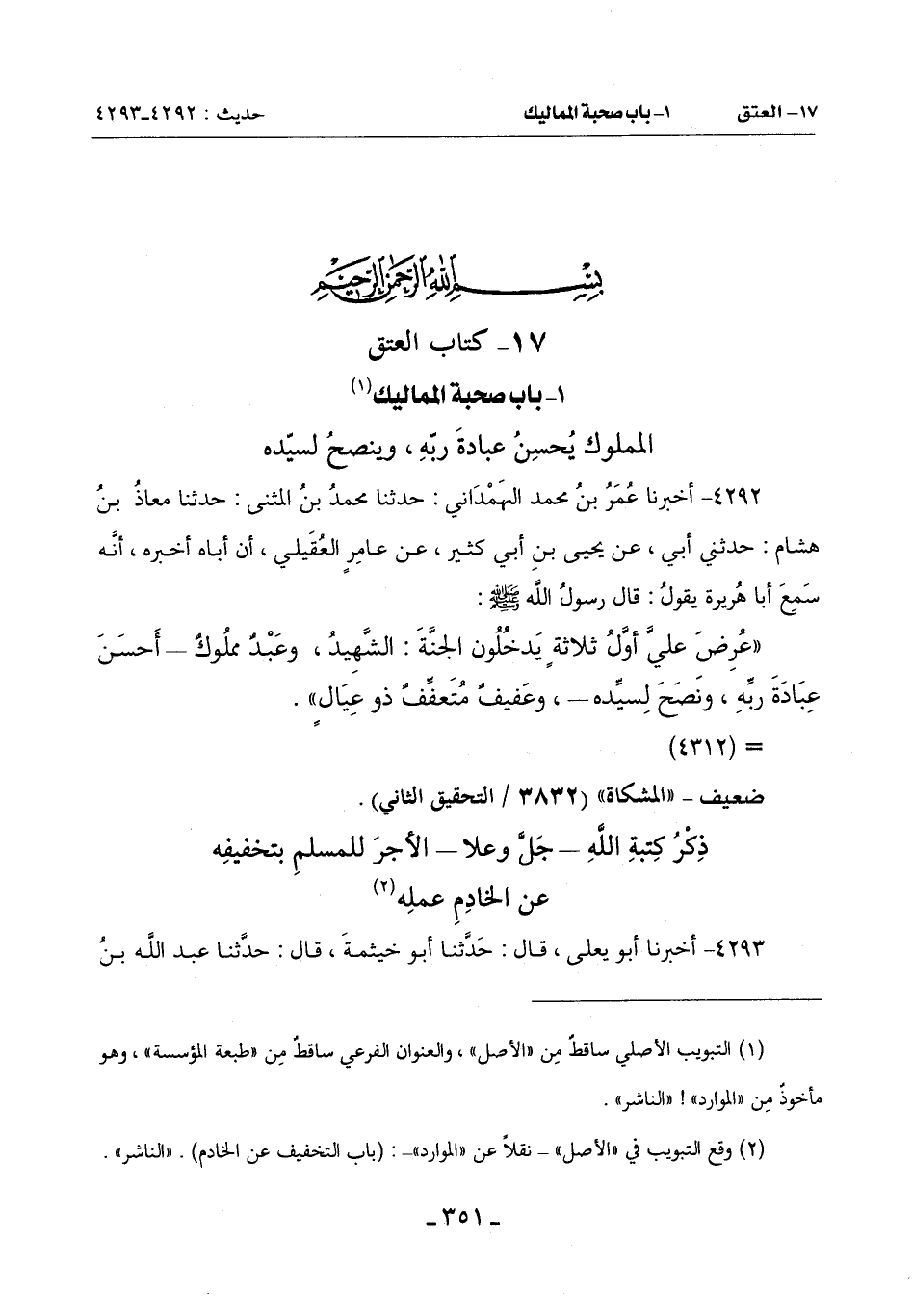 (¬1) التبويب الأصلي ساقط من ((الأصل)) , والعنوان الفرعي ساقط من ((طبعة المؤسسة)) , وهو مأخوذ من ((الموارد))! ((الناشر)).