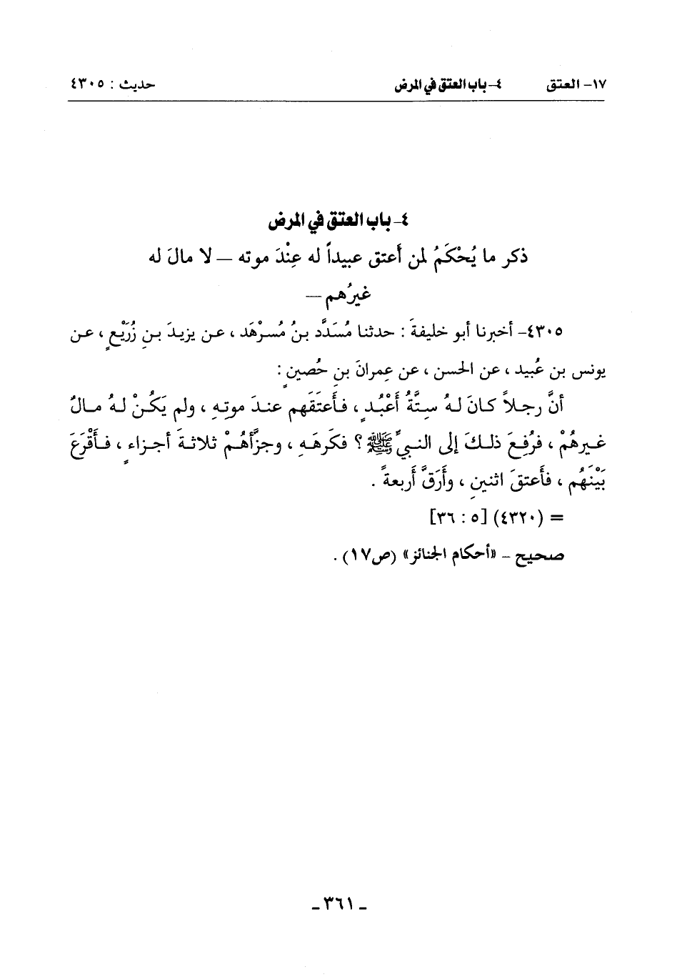 4305 - أَخْبَرَنَا أَبُو خَلِيفَةَ حَدَّثَنَا مُسَدَّدُ بْنُ مُسَرْهَدٍ عَنْ يَزِيدَ بْنَ زُرَيْعٍ عَنْ يُونُسَ بْنِ عُبَيْدٍ عَنِ الْحَسَنِ عَنْ عِمْرَانَ بْنِ حُصَيْنٍ: