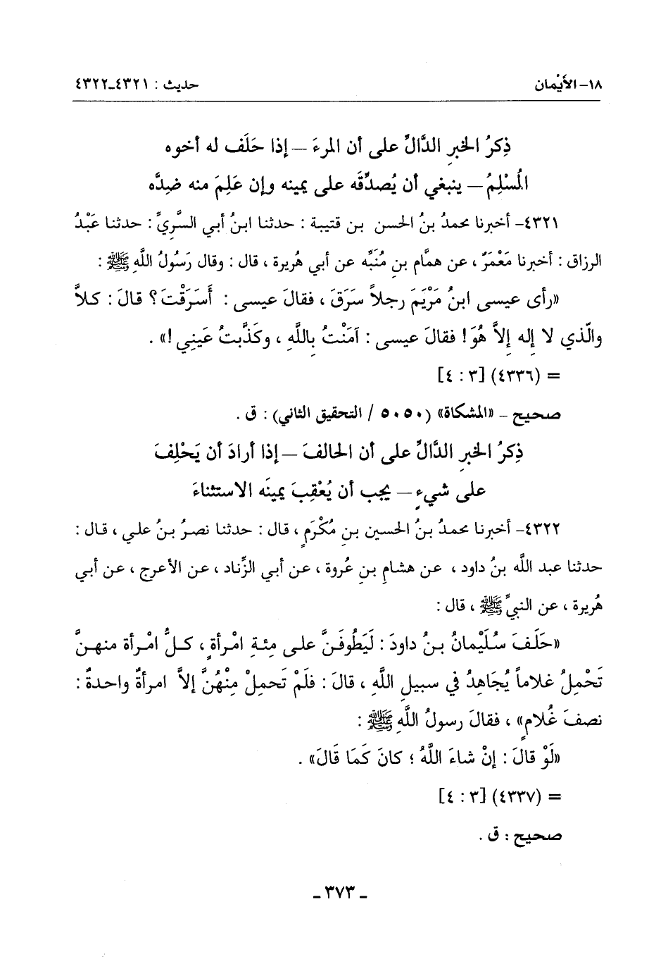 ذِكْرُ الْخَبَرِ الدَّالِّ عَلَى أَنَّ الْحَالِفَ ـ إِذَا أَرَادَ أَنْ يَحْلِفَ عَلَى شَيْءٍ ـ يَجِبُ أَنْ يُعْقِبَ يَمِينَهُ الِاسْتِثْنَاءَ