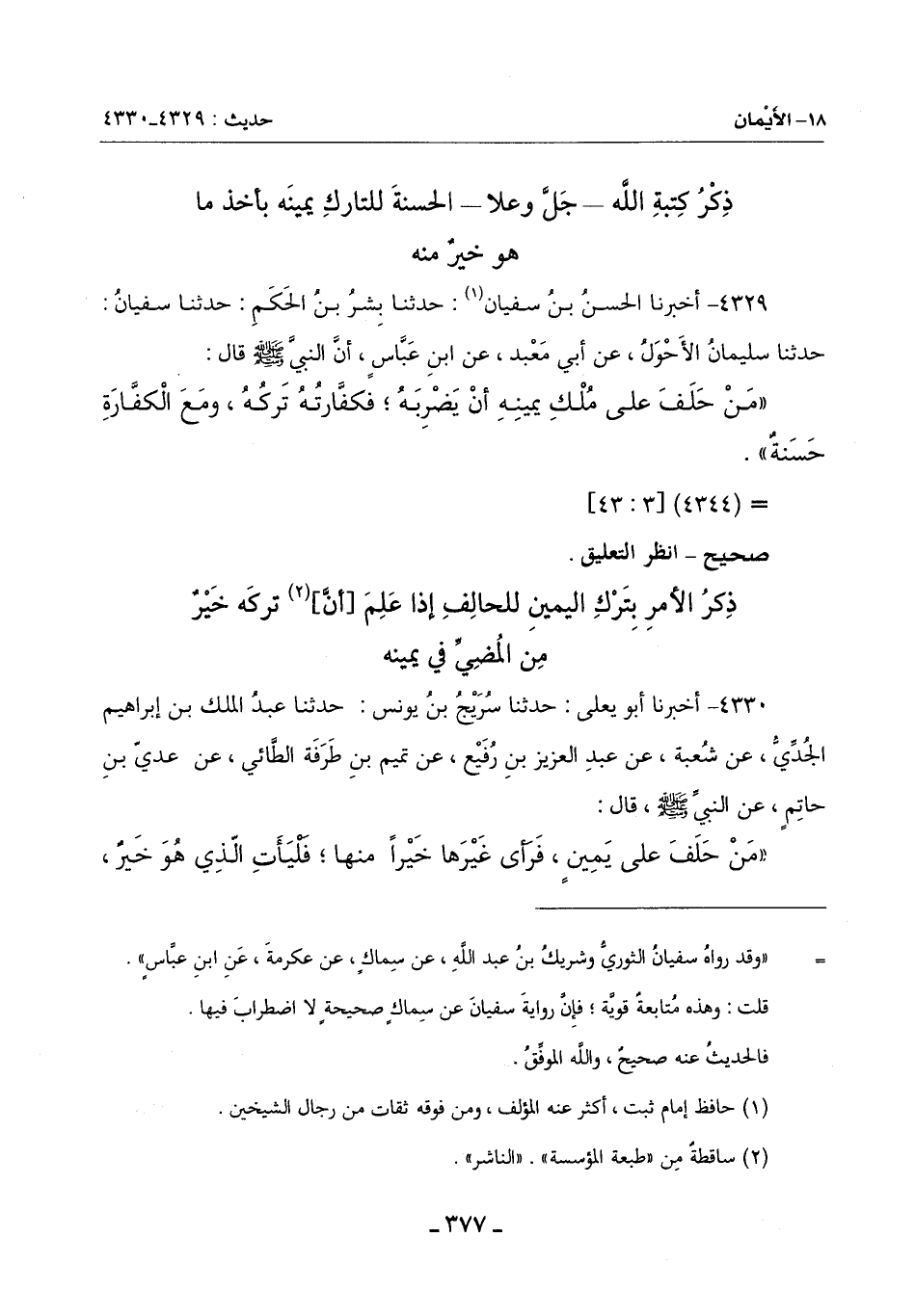 (مَنْ حَلَفَ عَلَى يَمِينٍ فَرَأَى غَيْرَهَا خَيْرًا مِنْهَا فَلْيَأْتِ الَّذِي هُوَ خَيْرٌ -[378]- ثُمَّ ليترك يمينه)