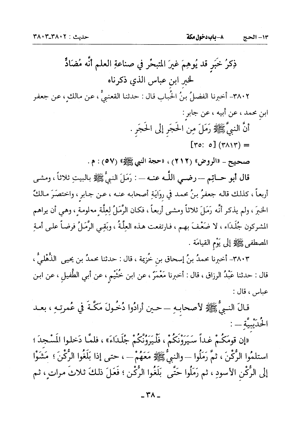 3802 - أَخْبَرَنَا الْفَضْلُ بْنُ الْحُبَابِ قَالَ: حَدَّثَنَا الْقَعْنَبِيُّ عَنْ مَالِكٍ عَنْ جَعْفَرُ بْنُ مُحَمَّدٍ عَنْ أَبِيهِ عَنْ جَابِرٍ: