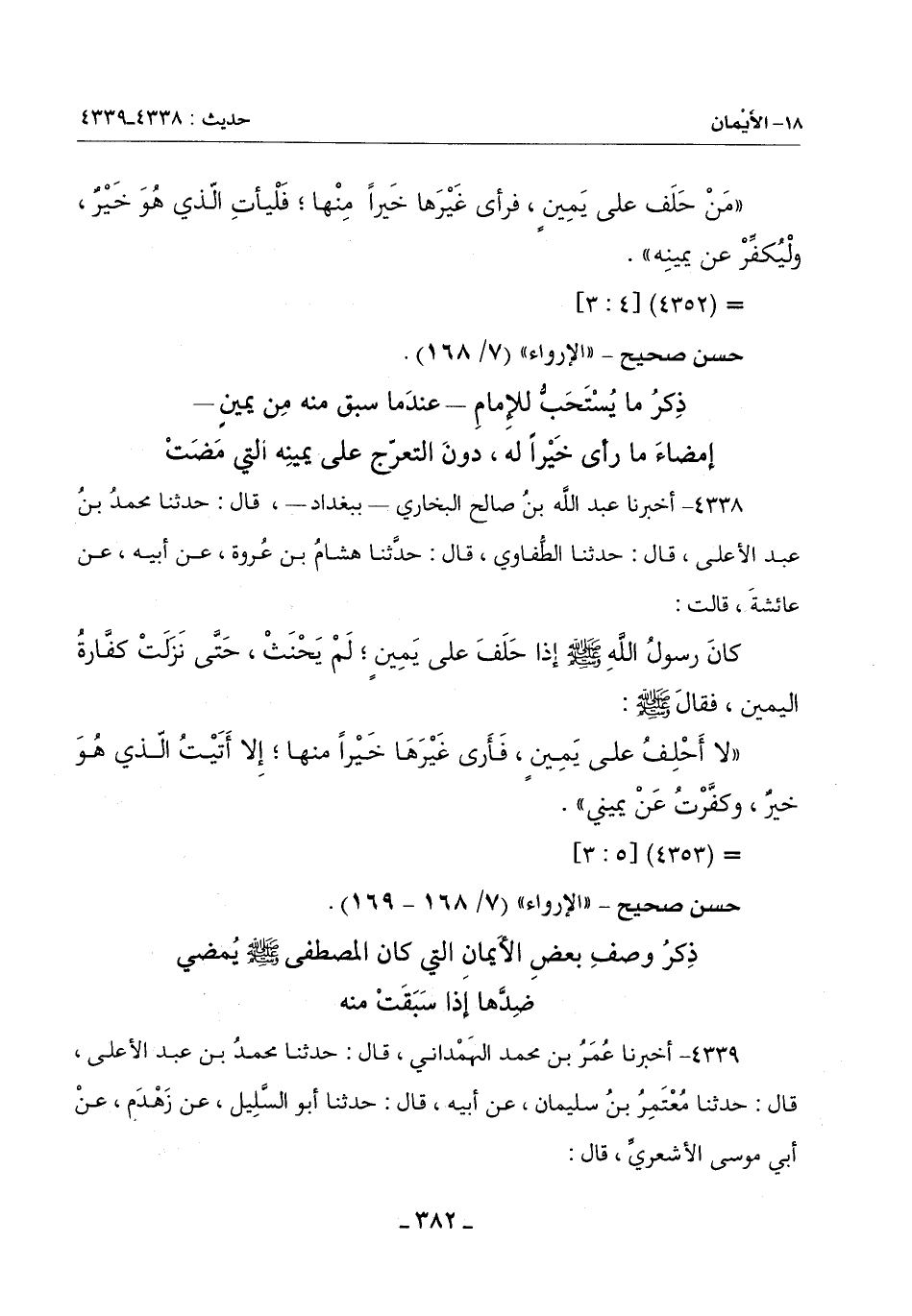 (لَا أَحْلِفُ عَلَى يَمِينٍ فَأَرَى غَيْرَهَا خَيْرًا مِنْهَا إِلَّا أَتَيْتُ الَّذِي هُوَ خَيْرٌ وكفَّرت عَنْ يميني)
