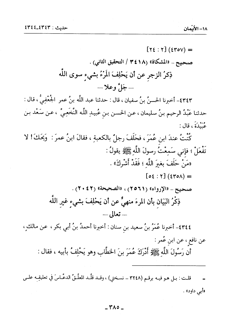 4343 - أَخْبَرَنَا الْحَسَنُ بْنُ سُفْيَانَ قَالَ: حَدَّثَنَا عَبْدُ اللَّهِ بْنُ عُمَرَ الْجُعْفِيُّ قَالَ: حَدَّثَنَا عَبْدُ الرَّحِيمِ بْنُ سُلَيْمَانَ عَنِ الْحَسَنِ بْنِ عُبَيْدِ اللَّهِ النَّخَعِيِّ عَنِ سَعْدِ بْنِ عُبَيْدَةَ قَالَ: