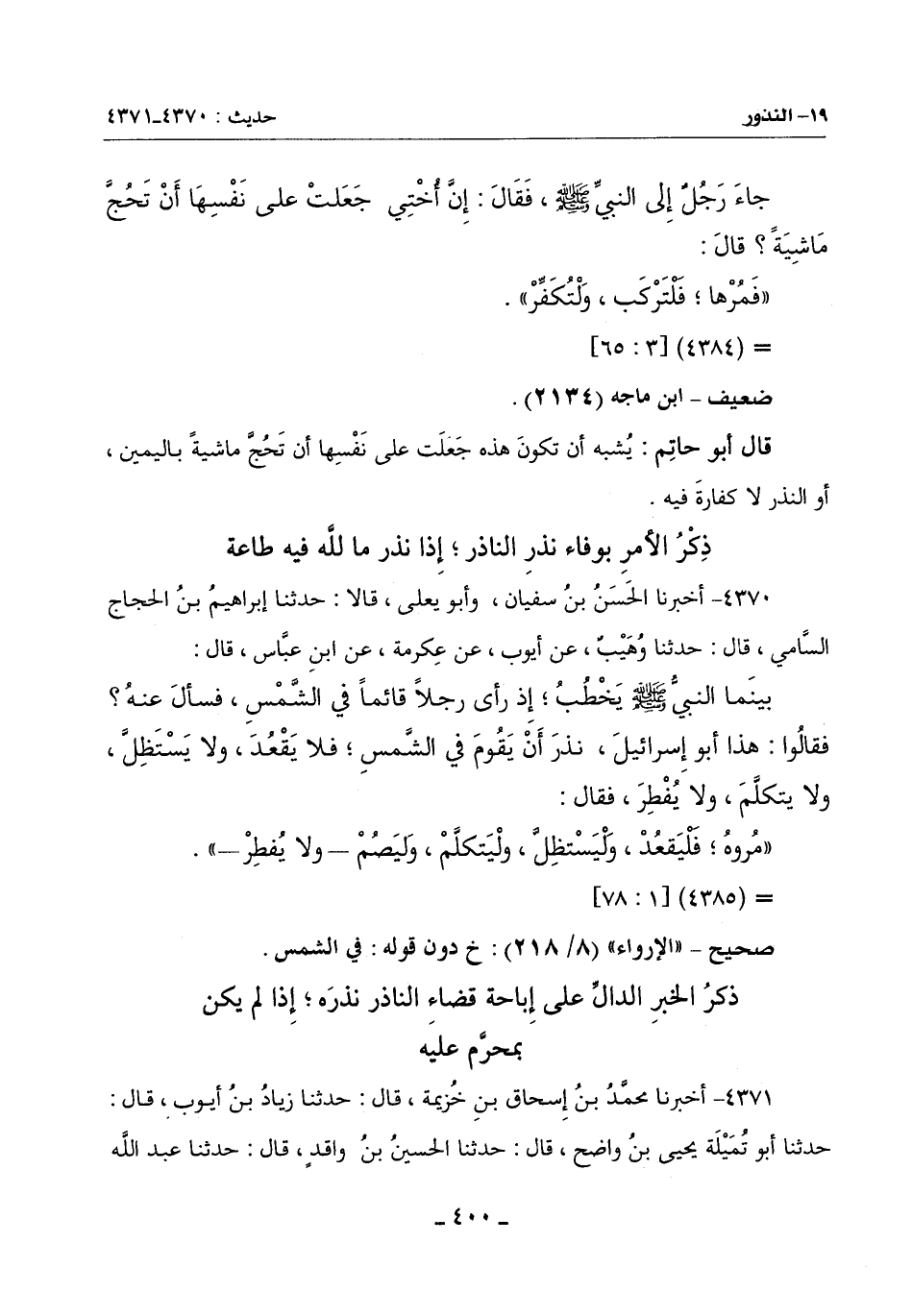 4370 - أَخْبَرَنَا الْحَسَنُ بْنُ سُفْيَانَ وَأَبُو يَعْلَى قَالَا: حَدَّثَنَا إِبْرَاهِيمُ بْنُ الْحَجَّاجِ السَّامِيُّ قَالَ: حَدَّثَنَا وُهَيْبٌ عَنْ أَيُّوبَ عَنْ عِكْرِمَةَ عَنِ ابْنِ عَبَّاسٍ قَالَ: