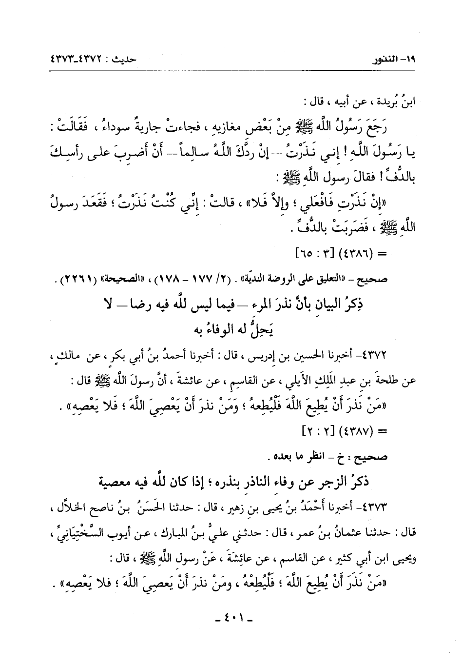 (من نَذَرَ أَنْ يُطِيعَ اللَّهَ فَلْيُطِعْهُ وَمَنْ نَذَرَ أن يعصي الله فلا يعصه) -[402]-