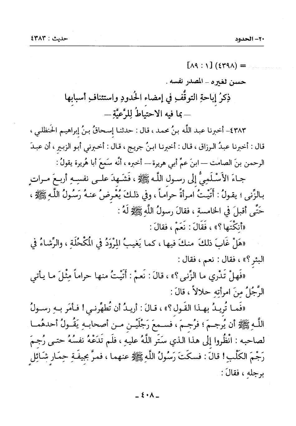 ذِكْرُ إِبَاحَةِ التَّوَقُّفِ فِي إِمْضَاءِ الْحُدُودِ وَاسْتِئْنَافِ أَسْبَابِهَا ـ بِمَا فِيهِ الِاحْتِيَاطُ لِلرَّعِيَةِ ـ