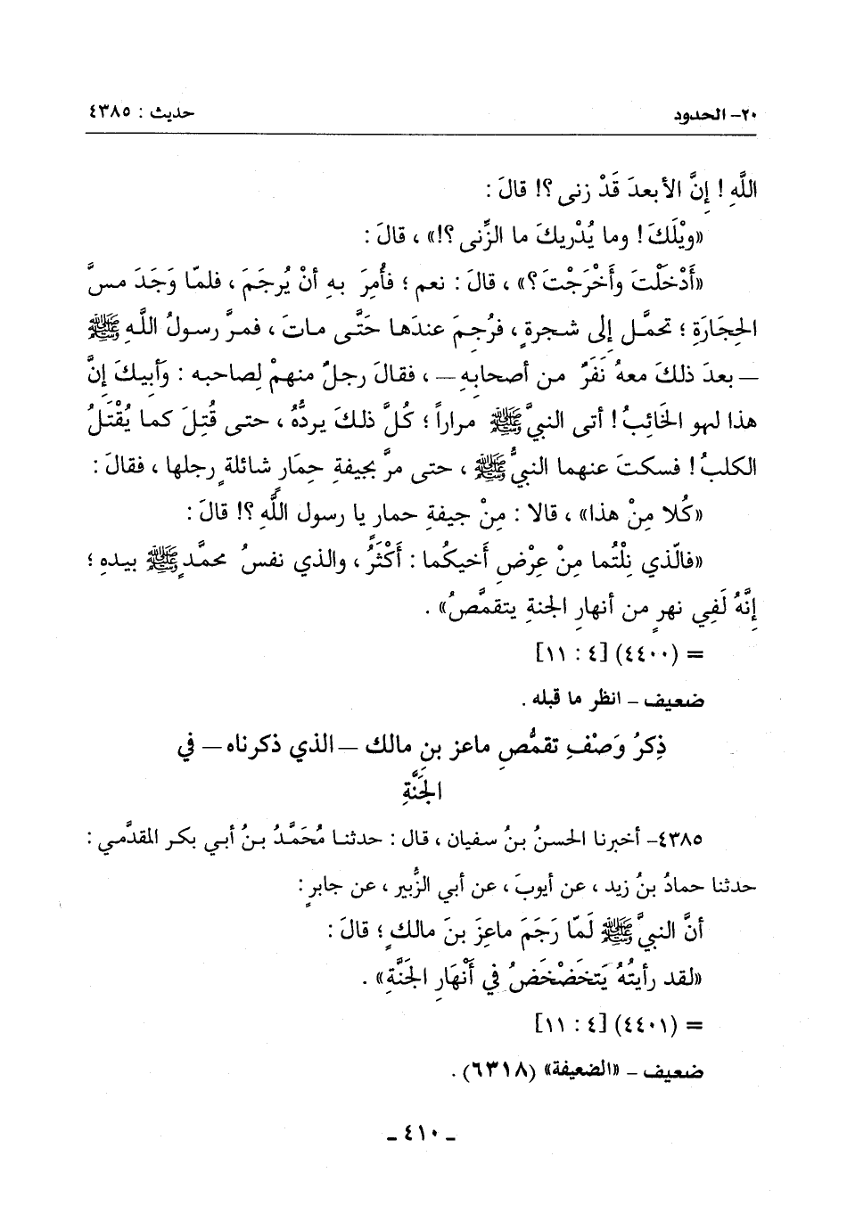 4385 - أَخْبَرَنَا الْحَسَنُ بْنُ سُفْيَانَ قَالَ: حَدَّثَنَا مُحَمَّدُ بْنُ أَبِي بَكْرٍ الْمُقَدَّمِيُّ حَدَّثَنَا حَمَّادُ بْنُ زَيْدٍ عَنْ أَيُّوبَ عَنْ أَبِي الزُّبَيْرِ عَنْ جَابِرٍ: