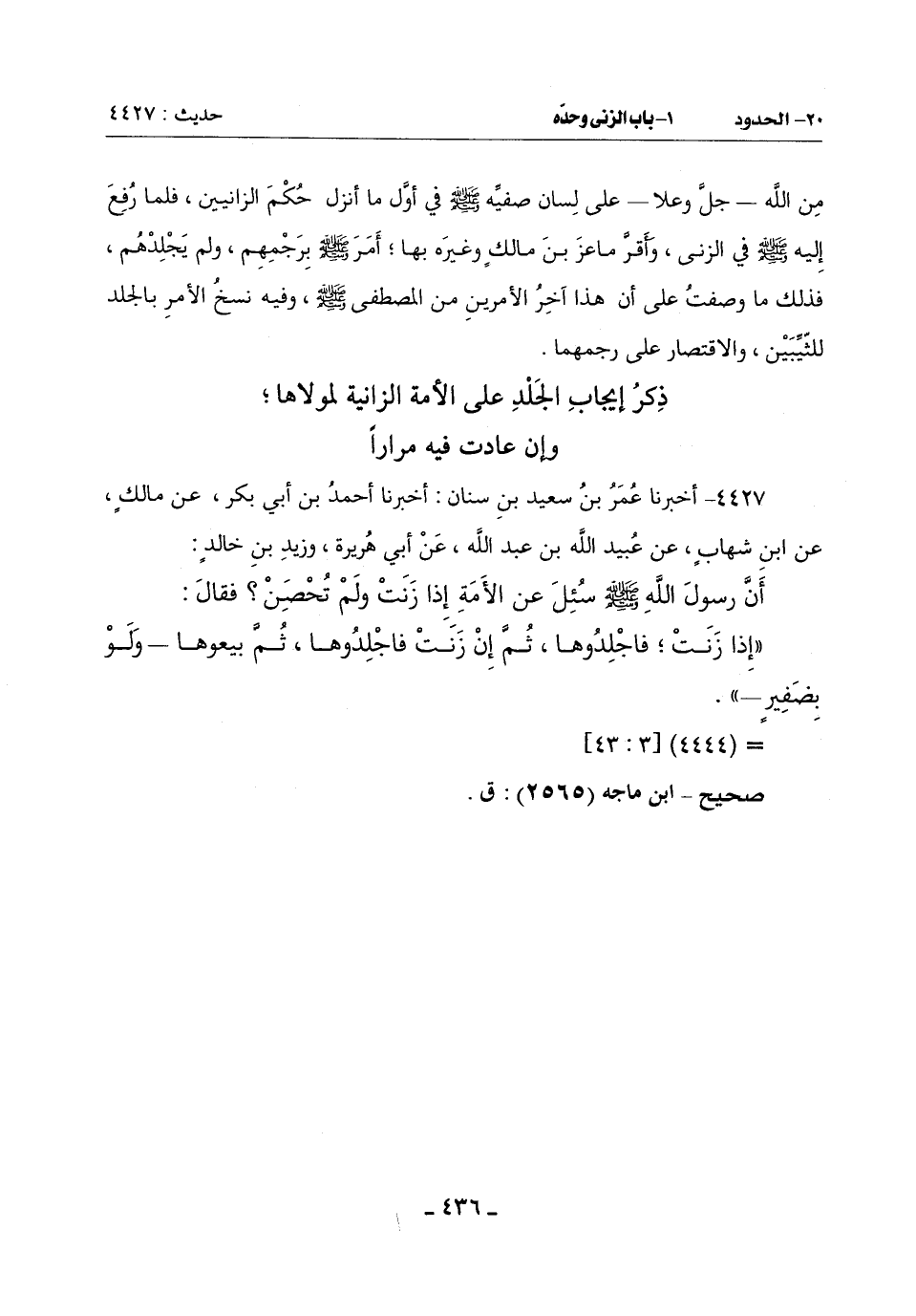 إن رسول الله صلى الله عليه وسلم سُئِلَ عَنِ الْأَمَةِ إِذَا زَنَتْ وَلَمْ تُحْصَنْ فَقَالَ: