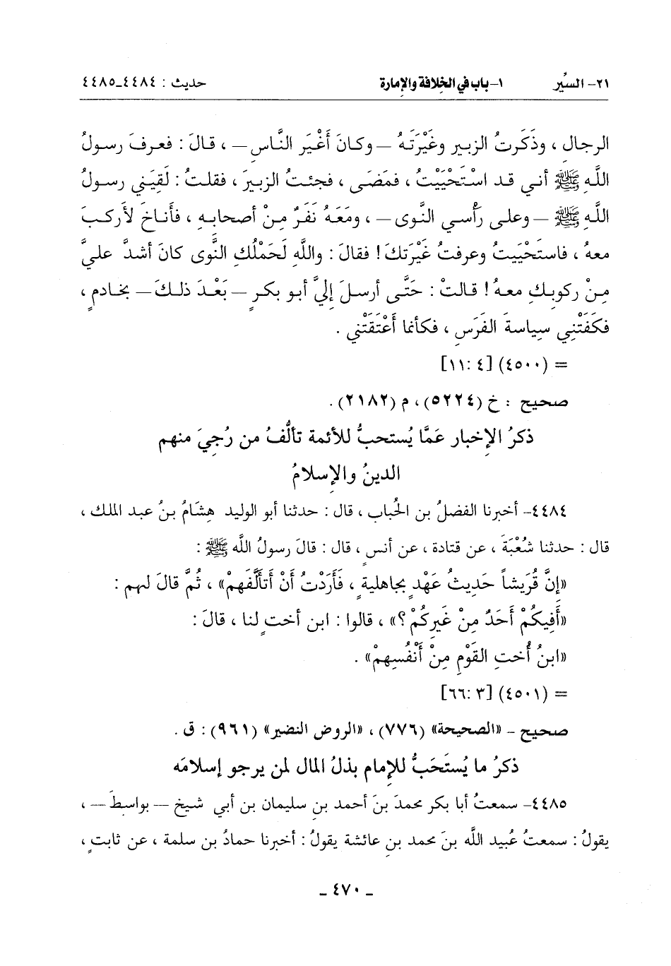 ذِكْرُ الْإِخْبَارِ عَمَّا يُسْتَحَبُّ لِلْأَئِمَّةِ تَأَلُّفُ مَنْ رُجِيَ مِنْهُمُ الدِّينُ وَالْإِسْلَامُ