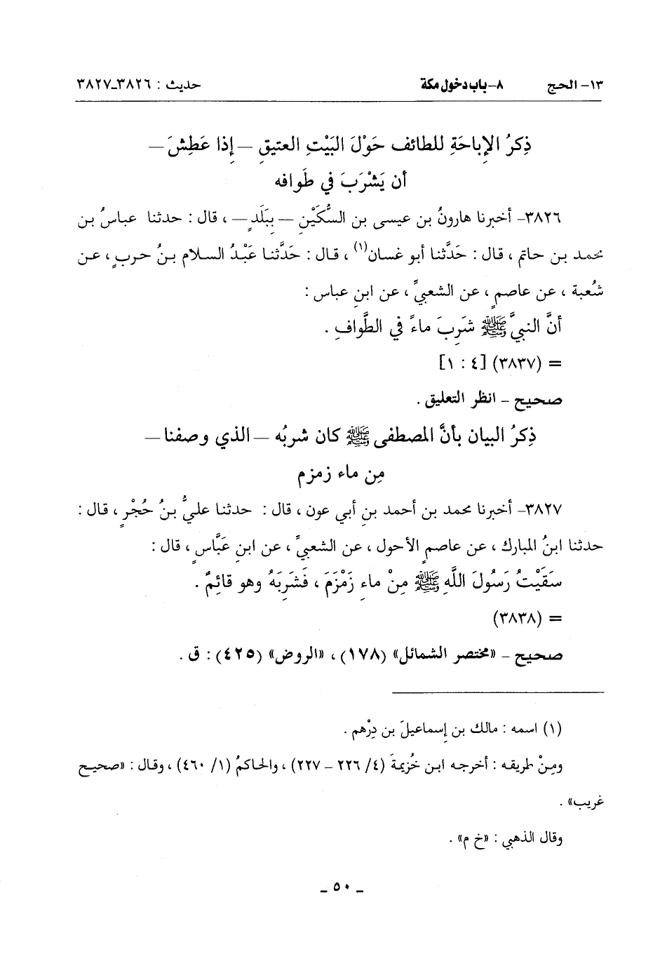 3826 - أَخْبَرَنَا هَارُونُ بْنُ عِيسَى بْنِ السُّكَيْنِ بِبَلَدٍ قَالَ: حَدَّثَنَا عَبَّاسُ بْنُ مُحَمَّدِ بْنِ حَاتِمٍ قَالَ: حَدَّثَنَا أَبُو غَسَّانَ (¬1) قَالَ: حَدَّثَنَا عَبْدُ السَّلَامِ بْنُ حَرْبٍ عَنْ شُعْبَةَ عَنْ عَاصِمٍ عَنِ الشَّعْبِيِّ عَنِ ابْنِ عَبَّاسٍ: