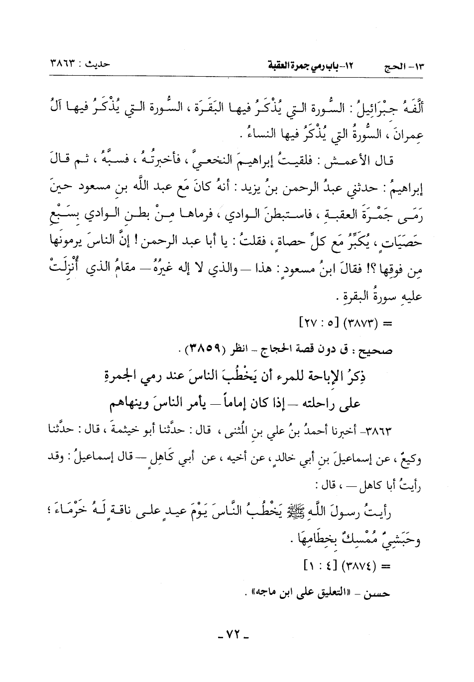 ذِكْرُ الْإِبَاحَةِ لِلْمَرْءِ أَنْ يَخْطُبَ النَّاسَ عِنْدَ رَمْيِ الْجَمْرَةِ عَلَى رَاحِلَتِهِ إِذَا كَانَ إِمَامًا يأمر الناس ويناهم