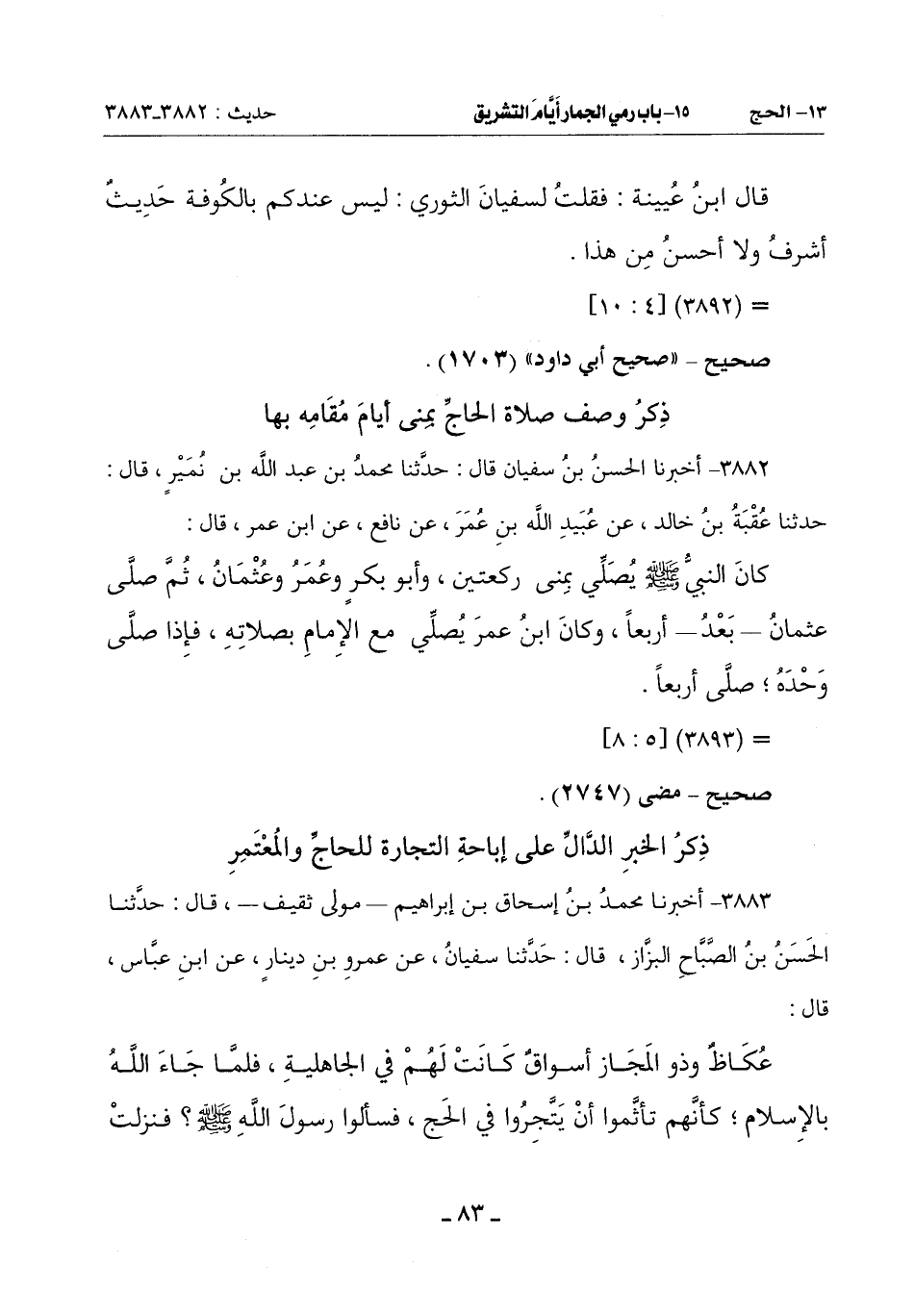 ذِكْرُ وَصْفِ صَلَاةِ الْحَاجِّ بِمِنًى أَيَّامَ مَقَامِهِ بها