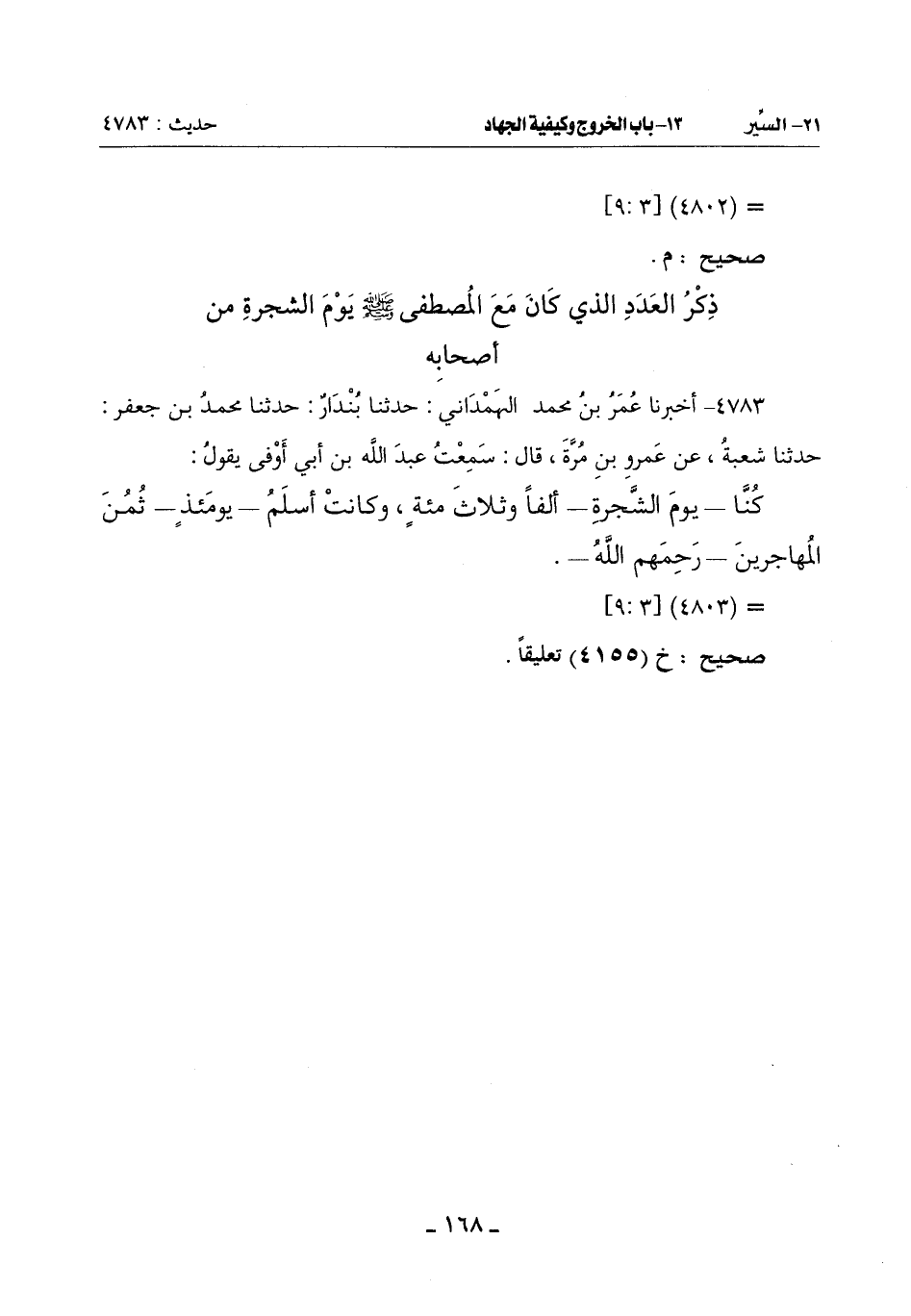 ذِكْرُ الْعَدَدِ الَّذِي كَانَ مَعَ الْمُصْطَفَى صَلَّى اللَّهُ عَلَيْهِ وَسَلَّمَ يَوْمَ الشَّجَرَةِ مِنْ أَصْحَابِهِ