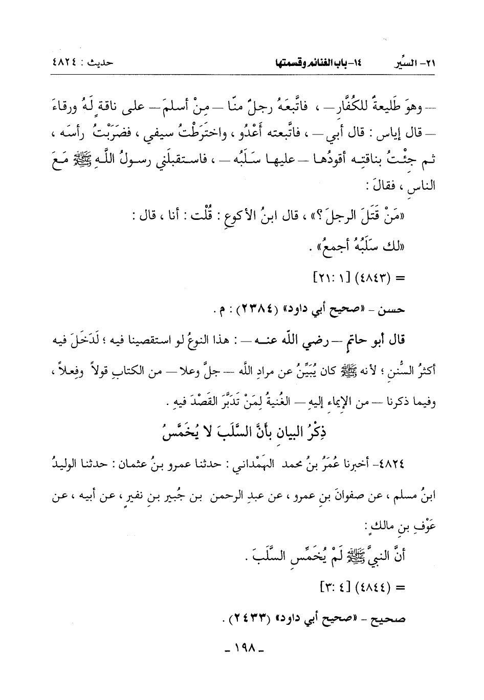 ذِكْرُ الْبَيَانِ بِأَنَّ السَّلَبَ لَا يُخَمَّسُ