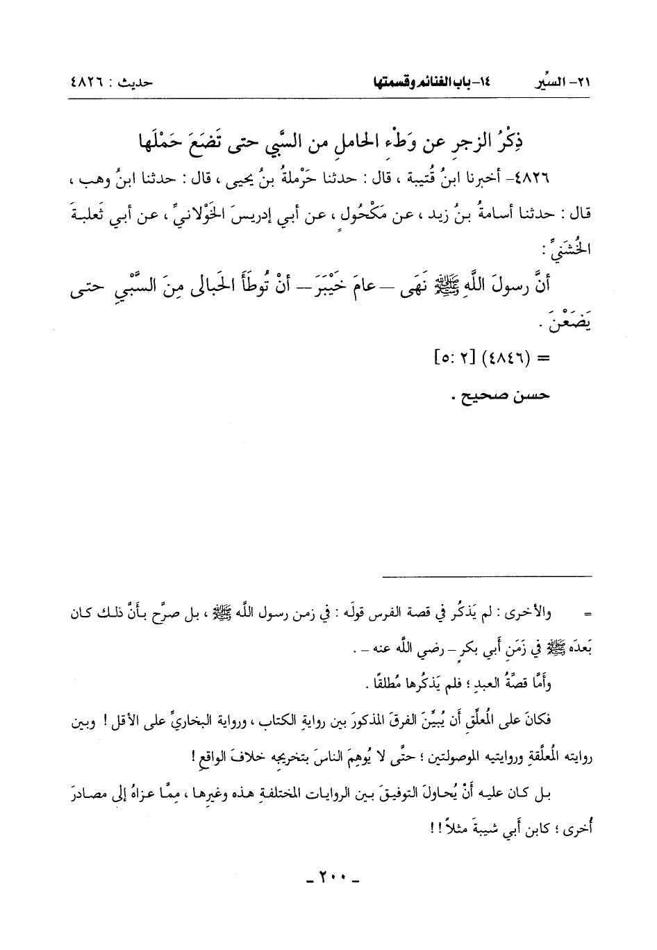 أَنَّ رَسُولَ اللَّهِ صَلَّى اللَّهُ عَلَيْهِ وَسَلَّمَ نَهَى ـ عَامَ خَيْبَرَ ـ أَنْ تُوطَأَ الْحَبَالَى مِنَ السَّبْيِ حتى يضعن