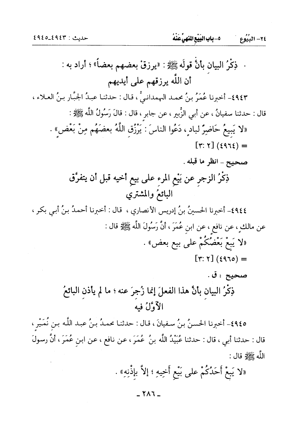 (لَا يَبِعْ أَحَدُكُمْ عَلَى بَيْعِ أَخِيهِ إِلَّا بِإِذْنِهِ) -[287]-