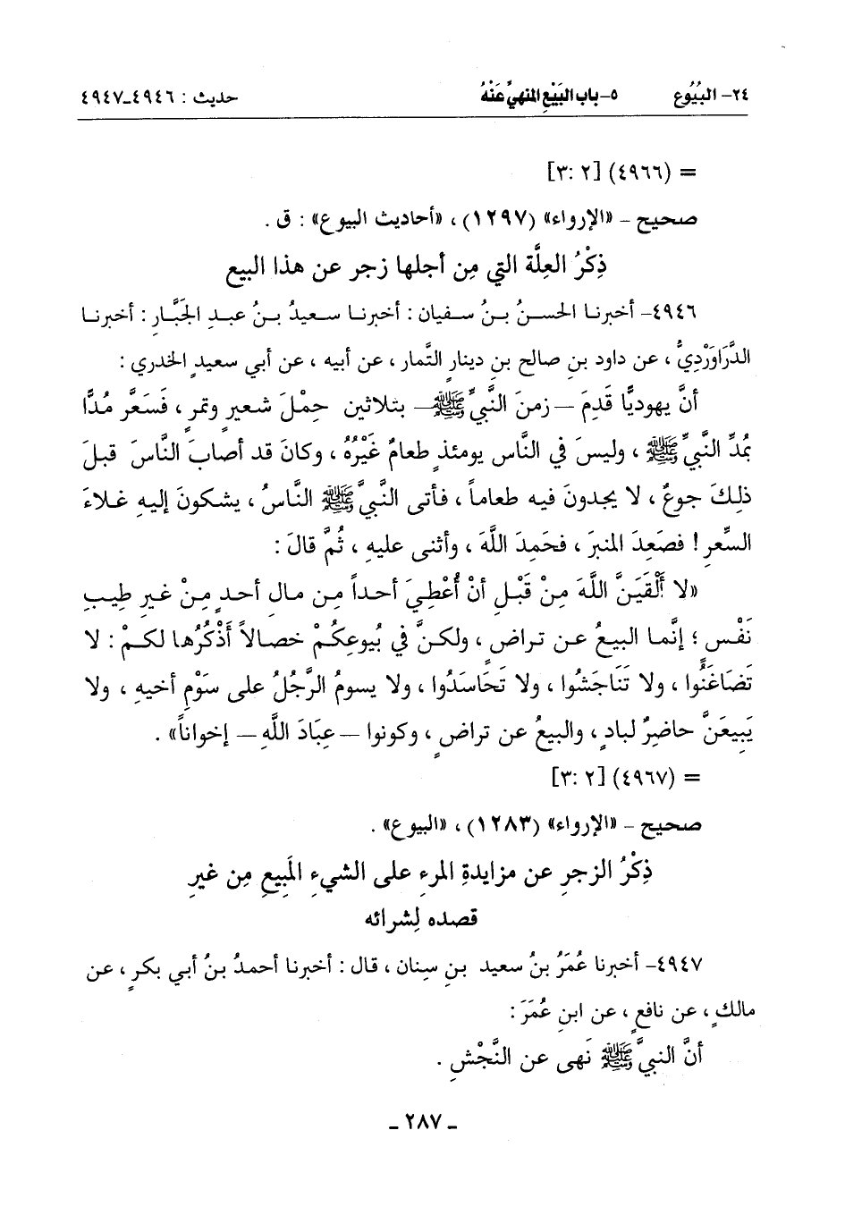 أَنَّ النَّبِيَّ صَلَّى اللَّهُ عَلَيْهِ وَسَلَّمَ نَهَى عَنِ النَّجْشِ -[288]-