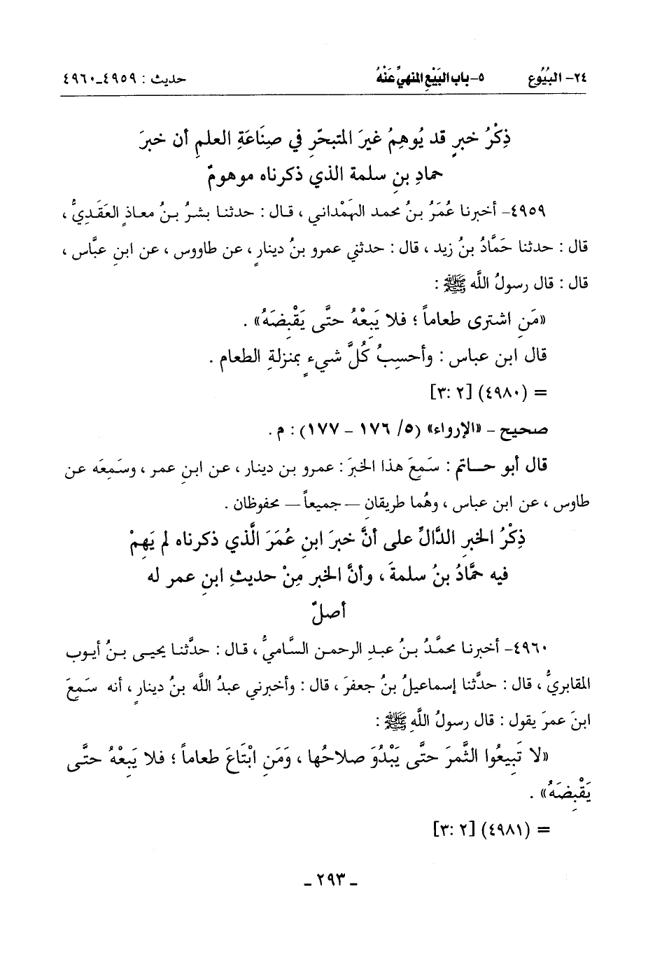 قَالَ أَبُو حَاتِمٍ: سَمِعَ هَذَا الْخَبَرَ عَمْرُو بْنُ دِينَارٍ عَنِ ابْنِ عُمَرَ وَسَمِعَهُ عَنْ طَاوُسٍ عَنِ ابْنِ عَبَّاسٍ وَهُمَا طَرِيقَانِ ـ جَمِيعًا ـ محفوظان