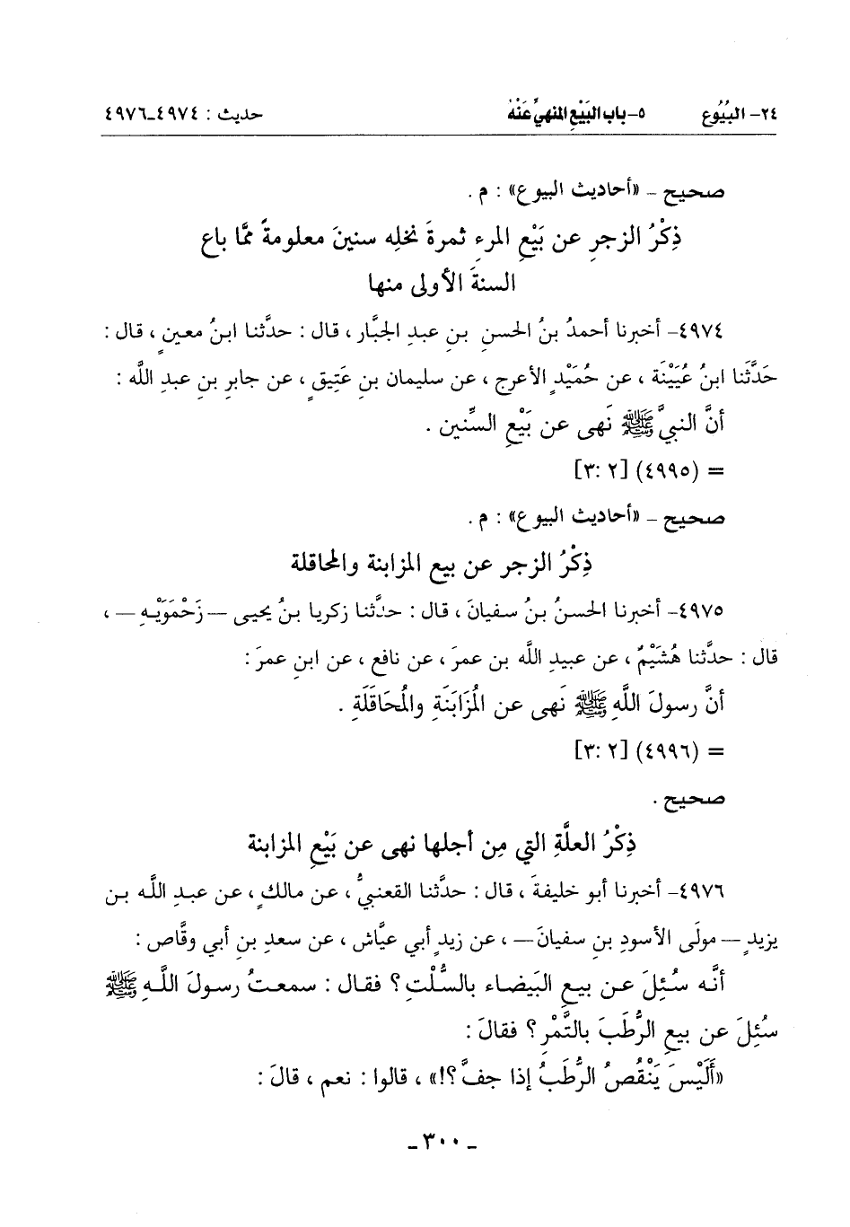 4975 - أَخْبَرَنَا الْحَسَنُ بْنُ سُفْيَانَ قَالَ: حَدَّثَنَا زَكَرِيَّا بْنُ يَحْيَى زَحْمَوَيْهِ قَالَ: حَدَّثَنَا هُشَيْمٌ عَنْ عُبَيْدِ اللَّهِ بْنِ عُمَرَ عَنْ نَافِعٍ عَنِ ابْنِ عُمَرَ: