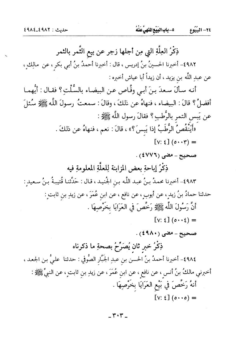 4983 - أَخْبَرَنَا مُحَمَّدُ بْنُ عَبْدِ اللَّهِ بْنِ الْجُنَيْدِ قَالَ: حَدَّثَنَا قُتَيْبَةُ بْنُ سَعِيدٍ حَدَّثَنَا حَمَّادُ بْنُ زَيْدٍ عَنْ أَيُّوبَ عَنْ نَافِعٍ عَنِ ابْنِ عُمَرَ عَنْ زَيْدِ بْنِ ثَابِتٍ:
