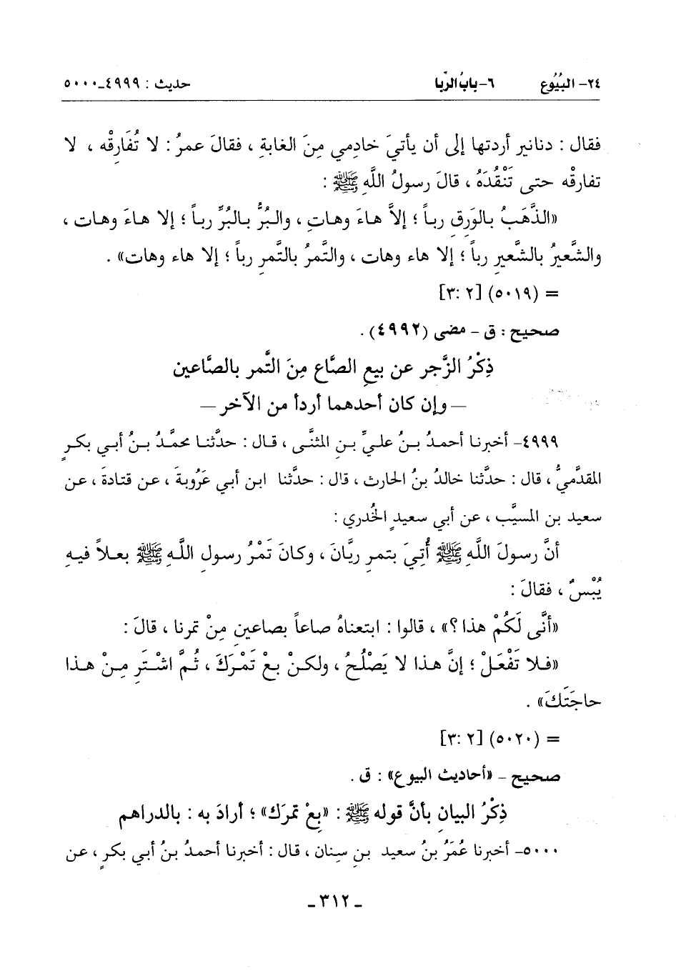 (أَكُلُّ تَمْرَكَ هَكَذَا؟ ) قَالَ: لَا وَاللَّهِ يَا رَسُولَ اللَّهِ إِنَّا لَنَأْخُذُ الصَّاعَ مِنْ هَذَا بِالصَّاعَيْنِ وَالصَّاعَيْنِ بِالثَّلَاثِ فَقَالَ رَسُولُ اللَّهِ صَلَّى اللَّهُ عَلَيْهِ وَسَلَّمَ: