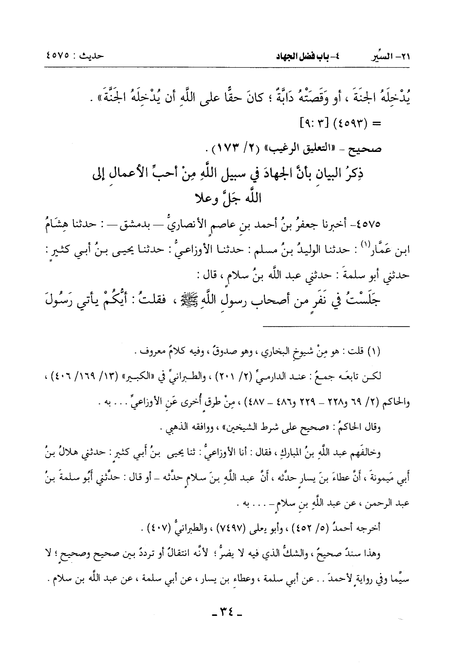 ذِكْرُ الْبَيَانِ بِأَنَّ الْجِهَادَ فِي سَبِيلِ اللَّهِ مِنْ أَحَبِّ الْأَعْمَالِ إِلَى اللَّهِ جَلَّ وَعَلَا