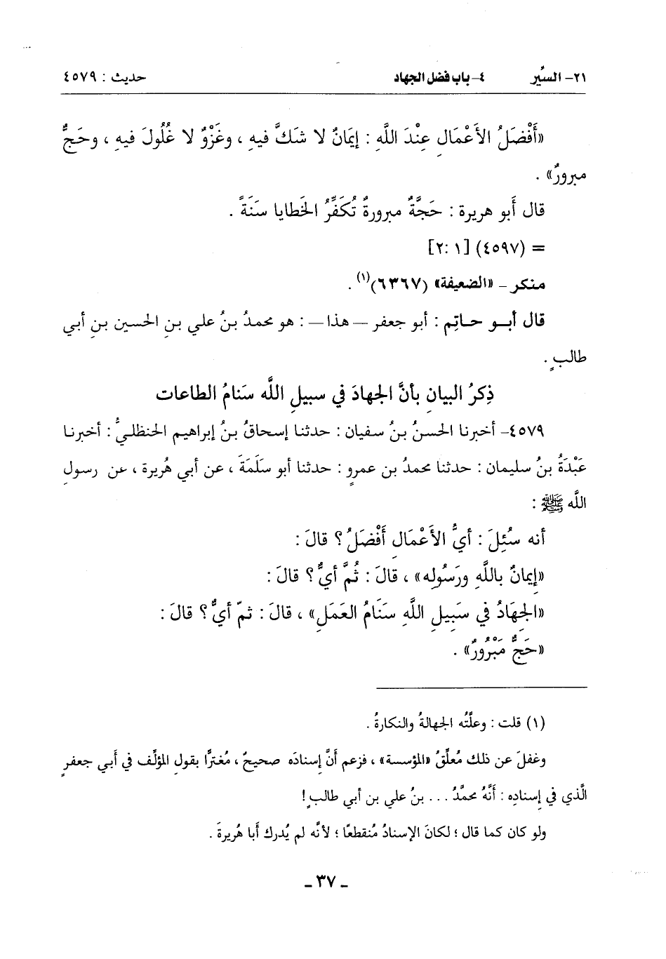 Qحسن صحيح - المصدر نفسه: ق دون قوله: ((سنام العمل)).