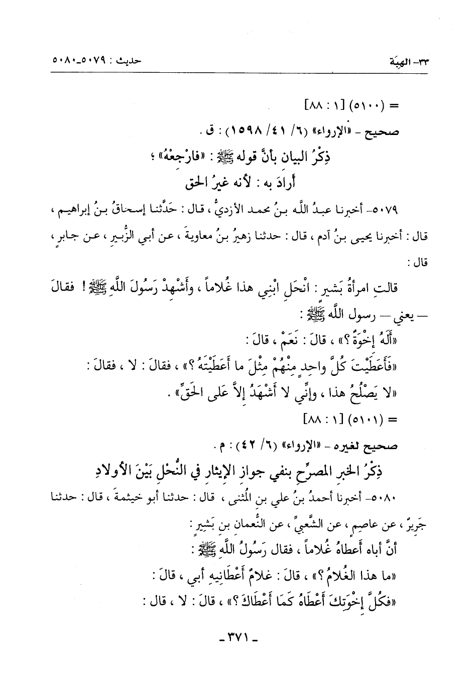 (فَكُلُّ إِخْوَتِكَ أَعْطَاهُ كَمَا أَعْطَاكَ؟ ) قَالَ: لَا قَالَ: -[372]-
