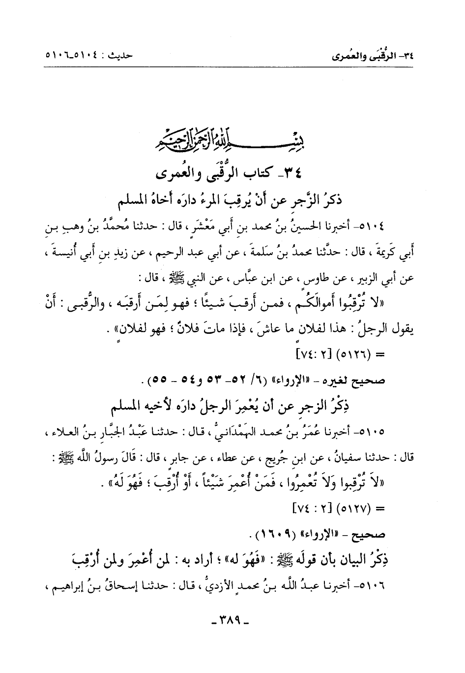 34 - كِتَابُ الرُّقْبَى والعُمرى