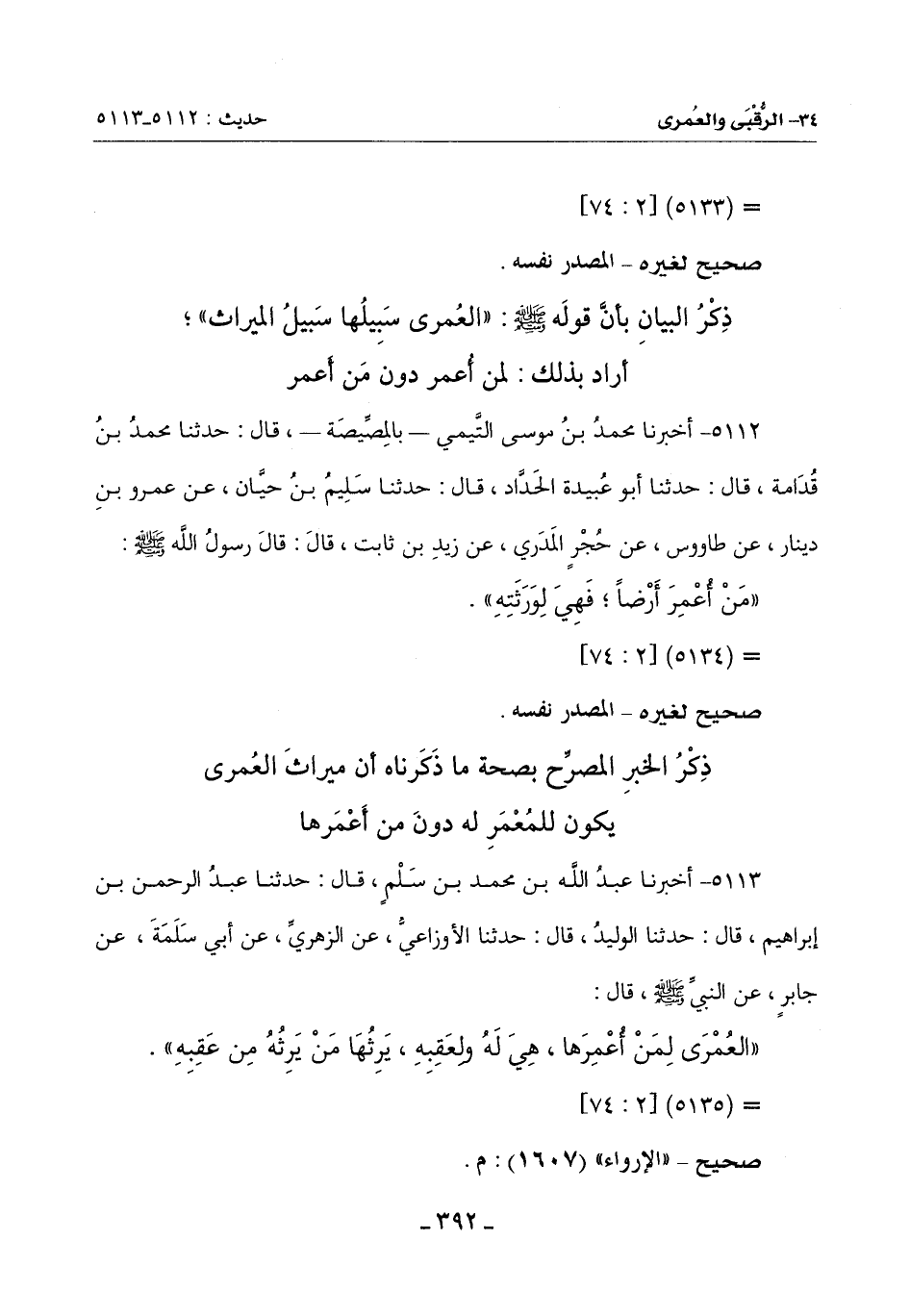 ذِكْرُ الْخَبَرِ الْمُصَرِّحِ بِصِحَّةِ مَا ذَكَرْنَاهُ أَنَّ مِيرَاثَ الْعُمْرَى يَكُونُ لِلْمُعْمَرِ لَهُ دُونَ مَنْ أعمرها