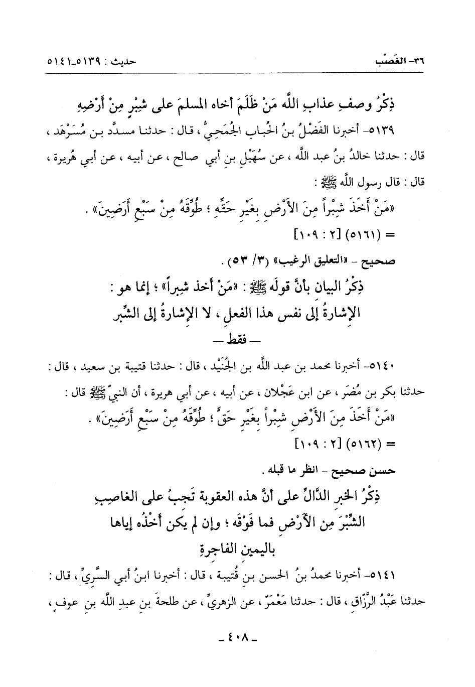 ذِكْرُ وَصْفِ عَذَابِ اللَّهِ مَنْ ظَلَمَ أَخَاهُ الْمُسْلِمَ عَلَى شِبْرٍ مِنْ أَرْضِهِ
