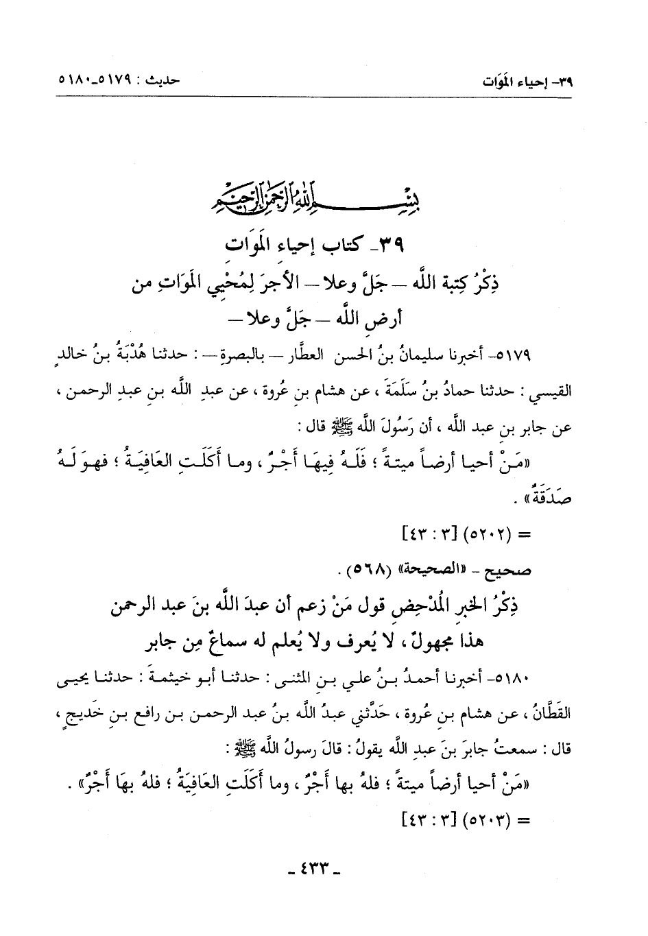 39 - كِتَابُ إِحْيَاءِ الْمَوَاتِ