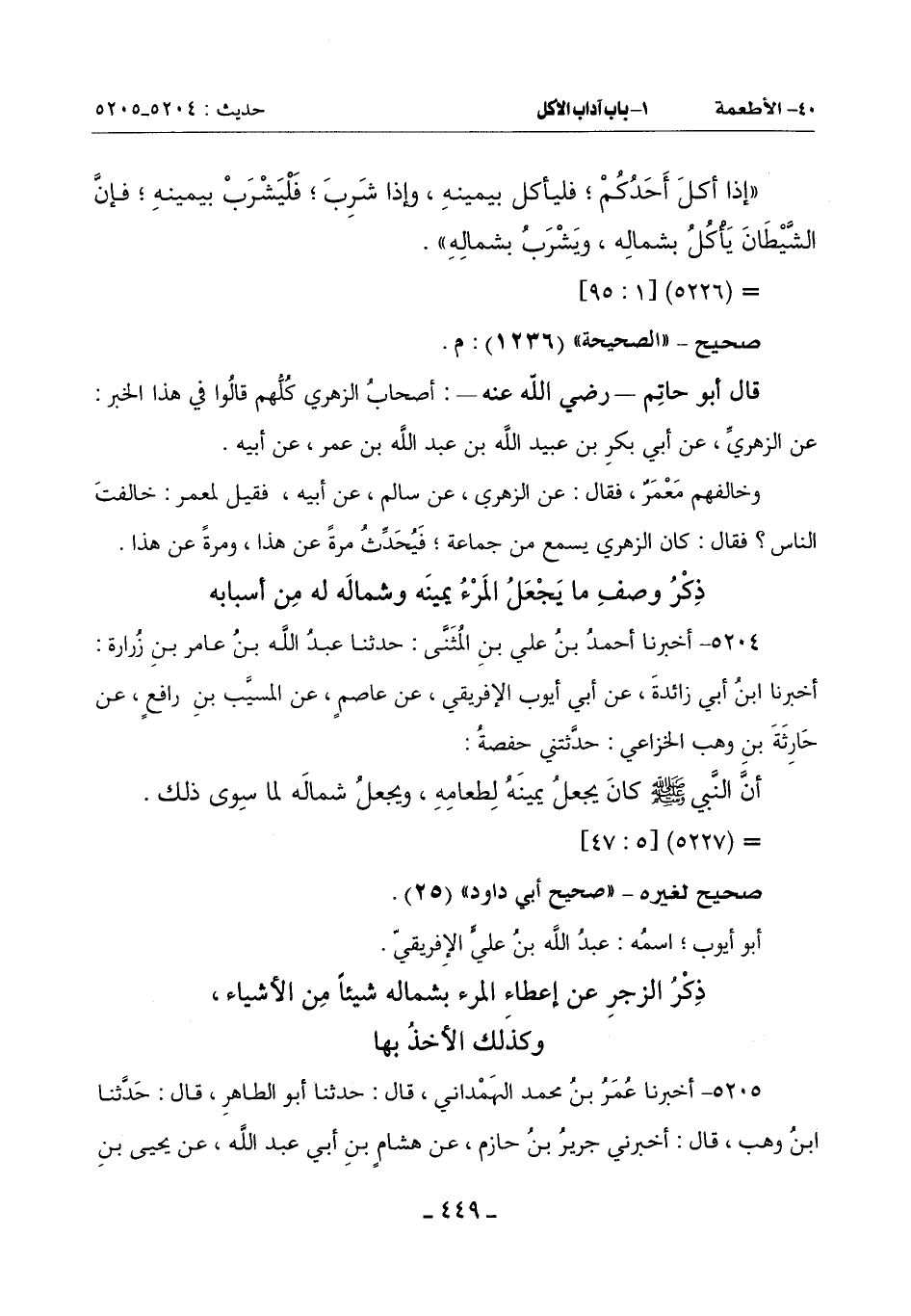 ذِكْرُ الزَّجْرِ عَنْ إِعْطَاءِ الْمَرْءِ بِشِمَالِهِ شَيْئًا مِنَ الْأَشْيَاءِ وَكَذَلِكَ الْأَخْذُ بِهَا