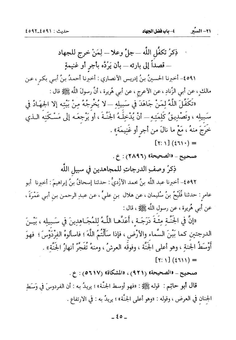 ذِكْرُ وَصْفِ الدَّرَجَاتِ لِلْمُجَاهِدِينَ فِي سَبِيلِ اللَّهِ