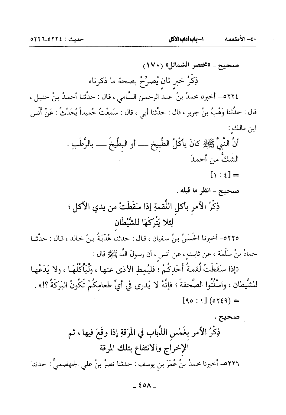 5224 - أَخْبَرَنَا مُحَمَّدُ بْنُ عَبْدِ الرَّحْمَنِ السَّامِيُّ قَالَ: حَدَّثَنَا أَحْمَدُ بْنُ حَنْبَلٍ قَالَ: حَدَّثَنَا وَهْبُ بْنُ جَرِيرٍ قَالَ: حَدَّثَنَا أَبِي قَالَ: سَمِعْتُ حُمَيْدًا يُحَدِّثُ عَنْ أَنَسِ بْنِ مَالِكٍ: