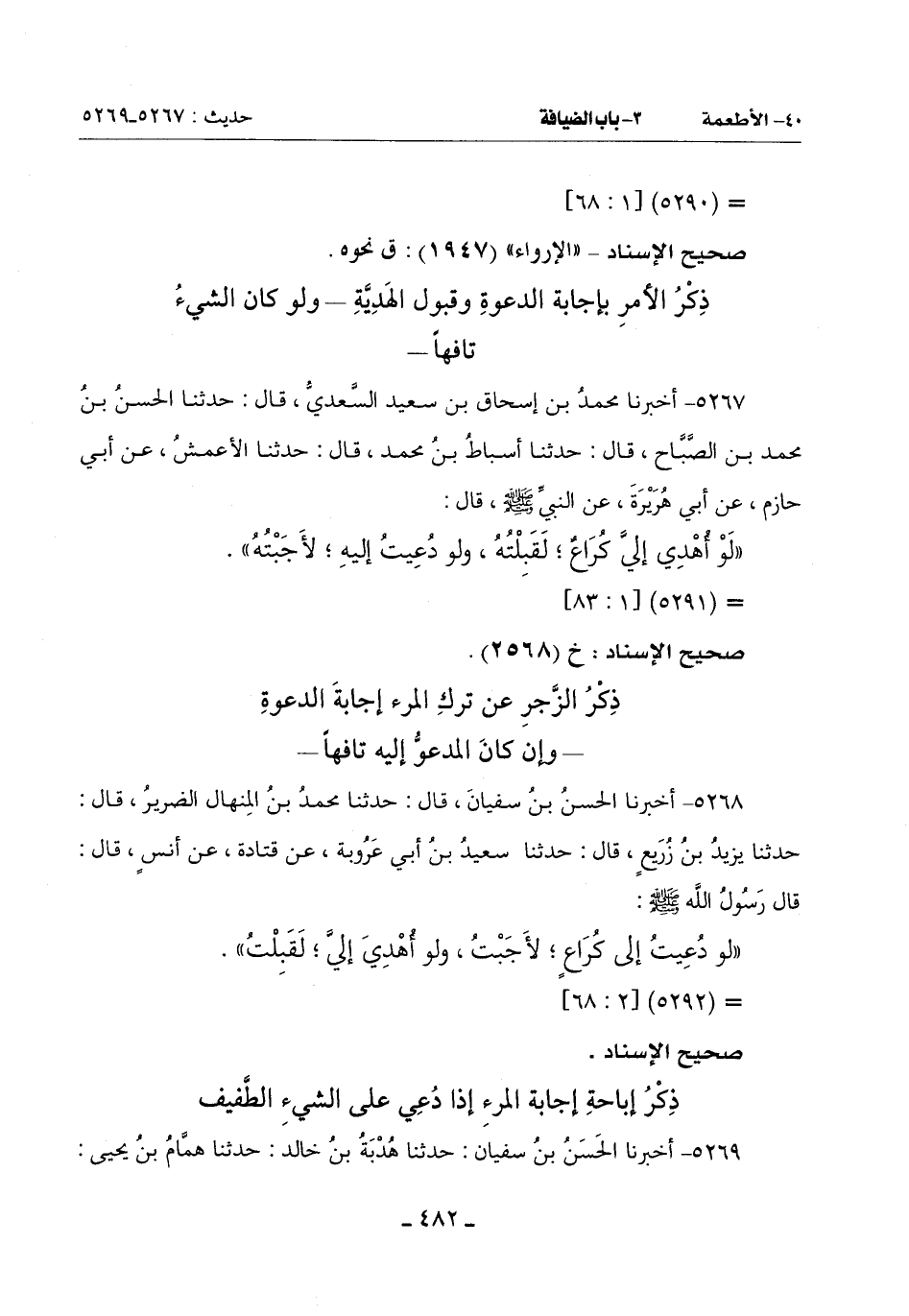 5269 - أَخْبَرَنَا الْحَسَنُ بْنُ سُفْيَانَ حَدَّثَنَا هُدْبَةُ بْنُ خَالِدٍ حَدَّثَنَا هَمَّامُ بْنُ يَحْيَى -[483]- حَدَّثَنَا قَتَادَةُ عَنْ أَنَسِ بْنِ مَالِكٍ: