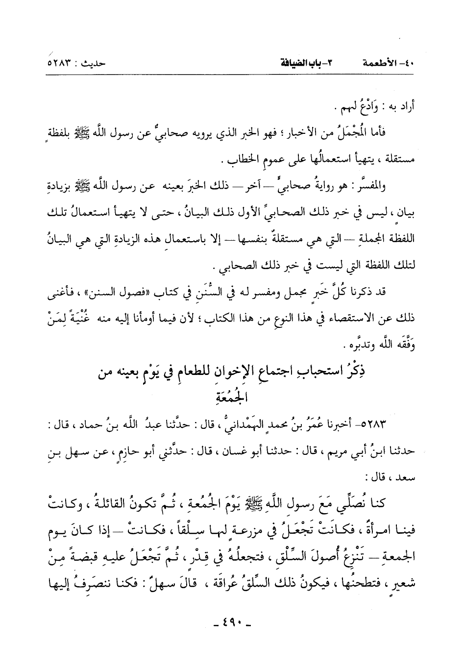 ذِكْرُ اسْتِحْبَابِ اجْتِمَاعِ الْإِخْوَانِ لِلطَّعَامِ فِي يَوْمٍ بِعَيْنِهِ مِنَ الْجُمُعَةِ