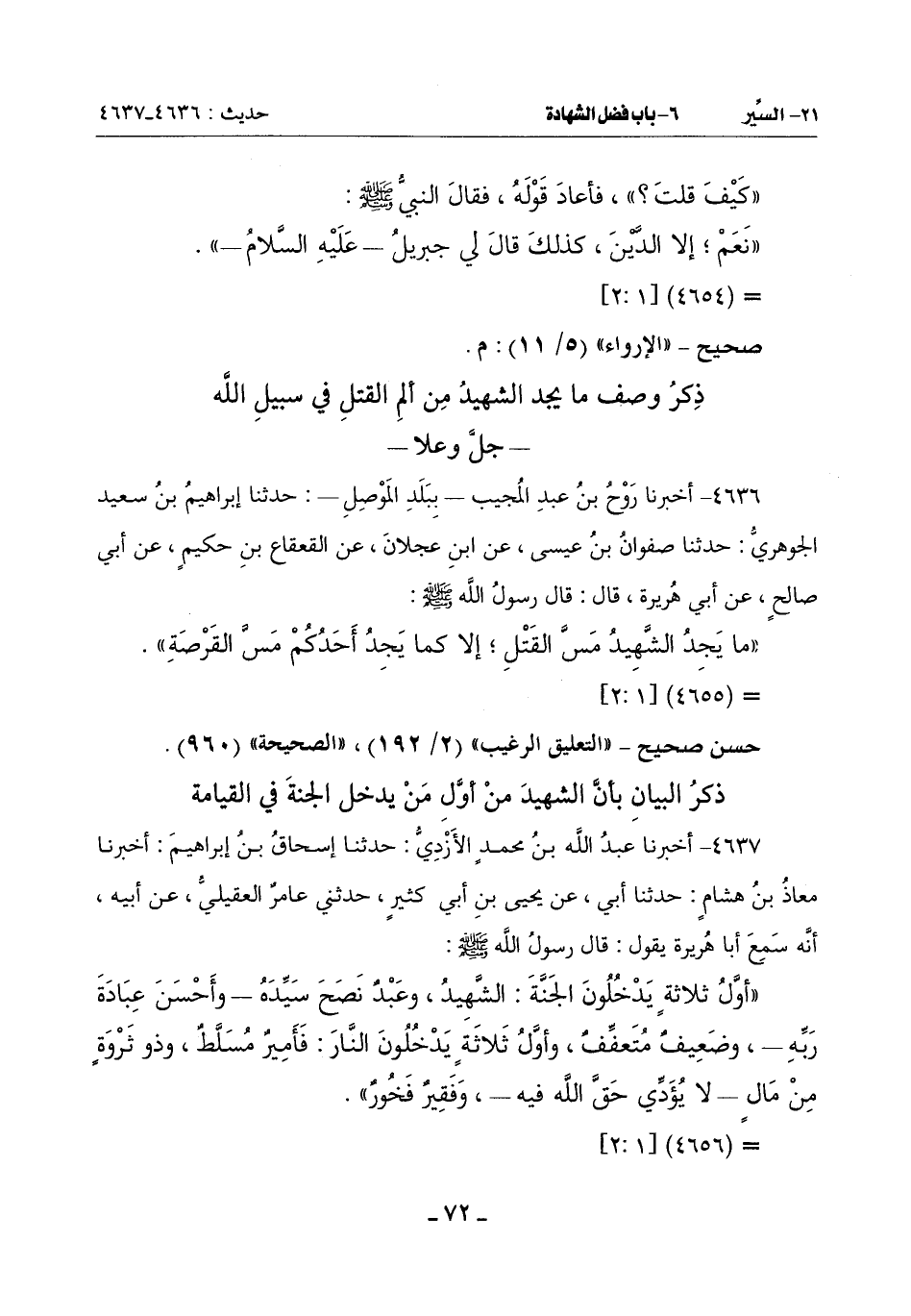ذِكْرُ وَصْفِ مَا يَجِدُ الشَّهِيدُ مِنْ أَلَمِ الْقَتْلِ فِي سَبِيلِ اللَّهِ جَلَّ وَعَلَا