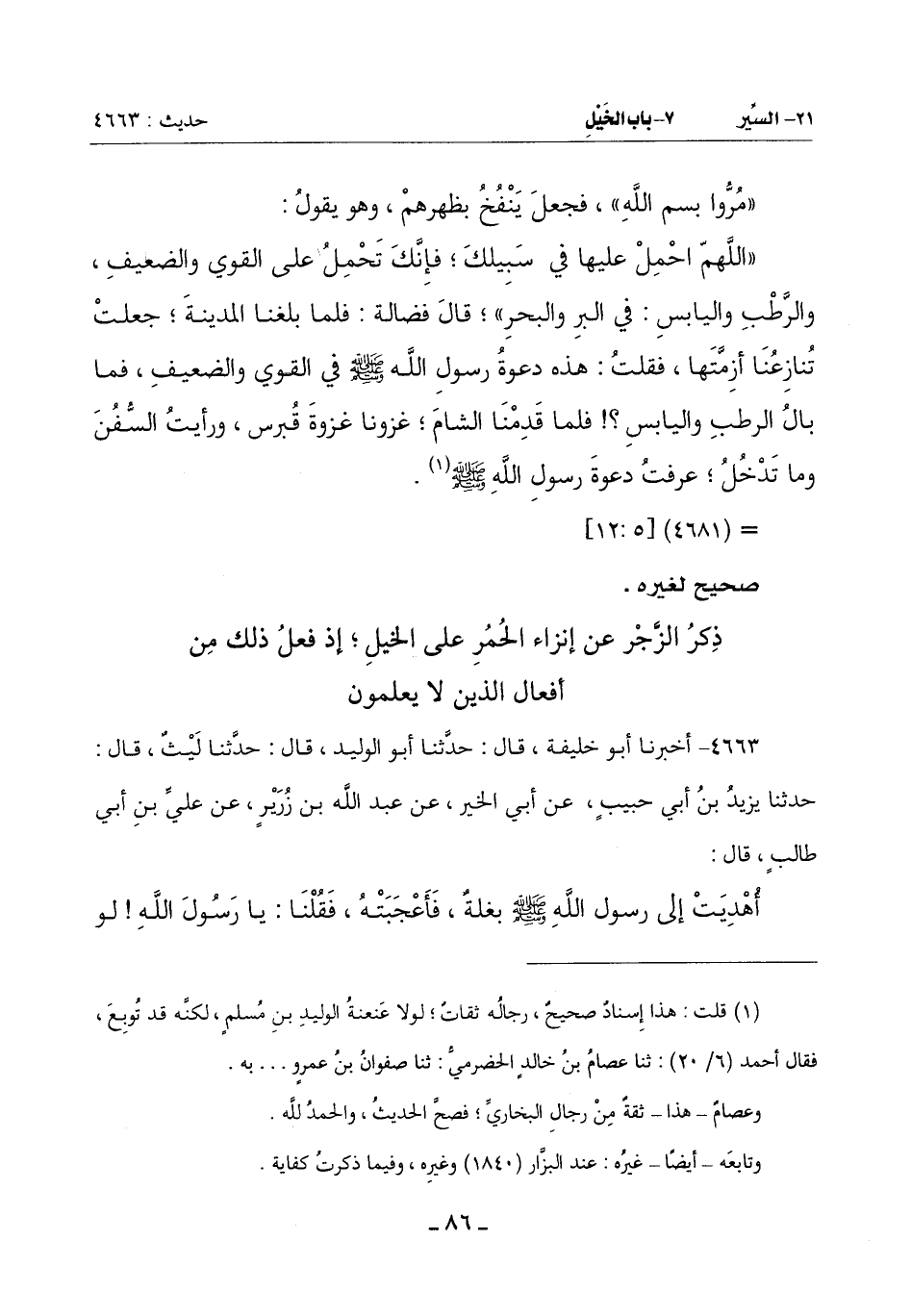 4663 - أَخْبَرَنَا أَبُو خَلِيفَةَ قَالَ: حدَّثنا أَبُو الْوَلِيدِ قَالَ: حَدَّثَنَا لَيْثٌ قَالَ: حَدَّثَنَا يَزِيدَ بْنِ أَبِي حَبِيبٍ عَنْ أَبِي الْخَيْرِ عَنْ عَبْدِ اللَّهِ بْنِ زُرَيْرٍ عَنْ عَلِيِّ بْنِ أَبِي طَالِبٍ قَالَ: