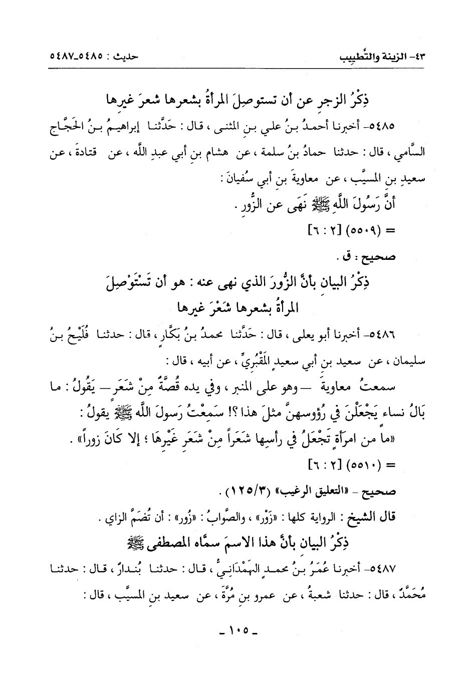 ذِكْرُ الْبَيَانِ بِأَنَّ الزُّورَ الَّذِي نَهَى عَنْهُ هُوَ أَنْ تَسْتَوْصِلَ الْمَرْأَةُ بِشَعْرِهَا شَعْرَ غَيْرِهَا