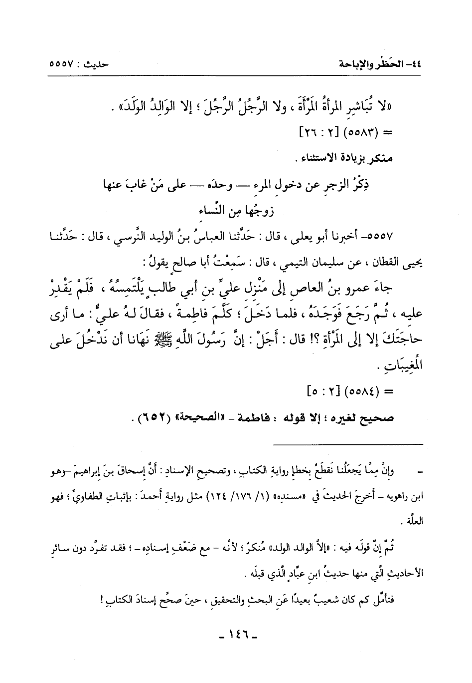 Qصحيح لغيره؛ إلاقوله: فاطمة - ((الصحيحة)) (652).